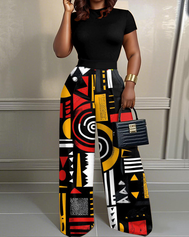 African Tribal Totems Print High Waist Wide-leg Women's Two-piece Set