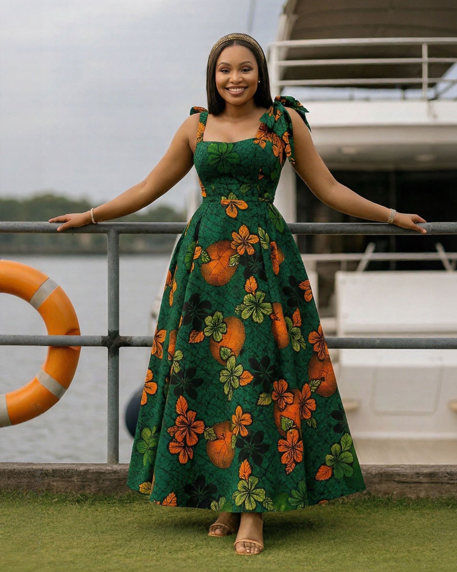 Ankara Plant and Floral Textures Lace-up Maxi Dress