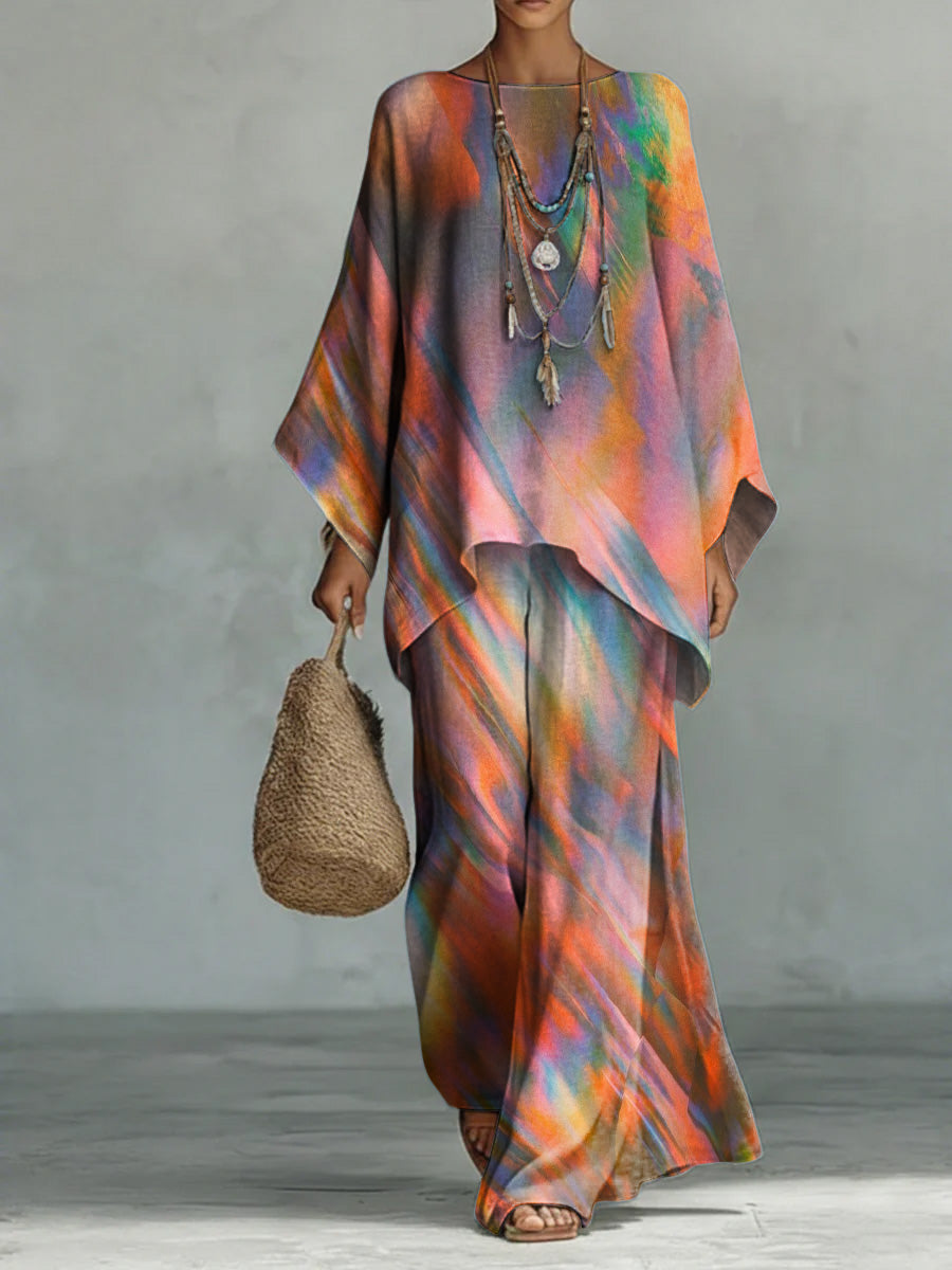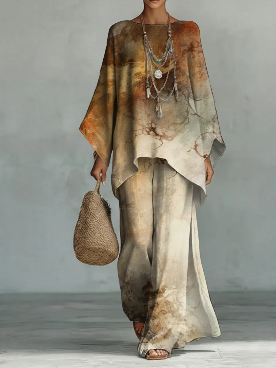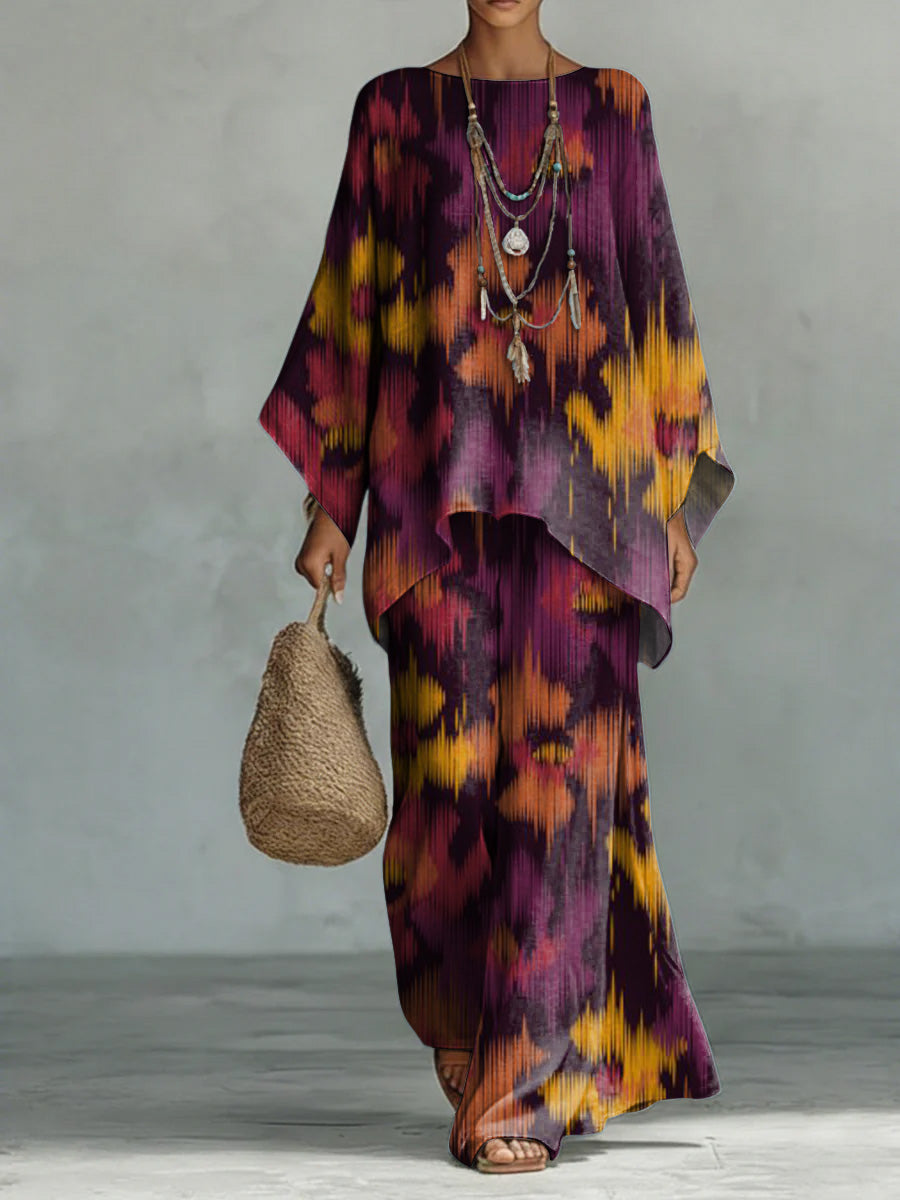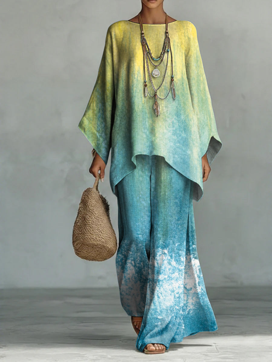 Women's Retro Gradient Art Print Casual Cotton Linen Suits