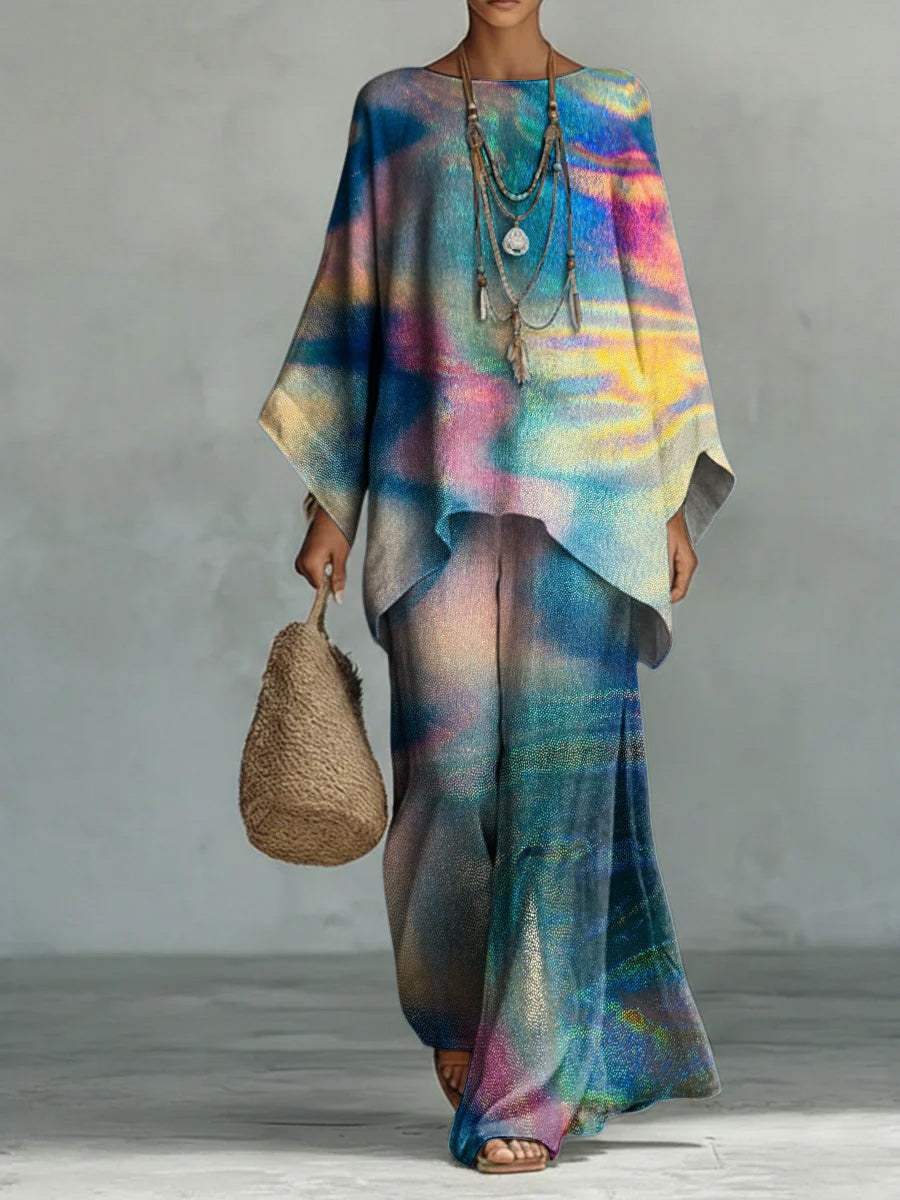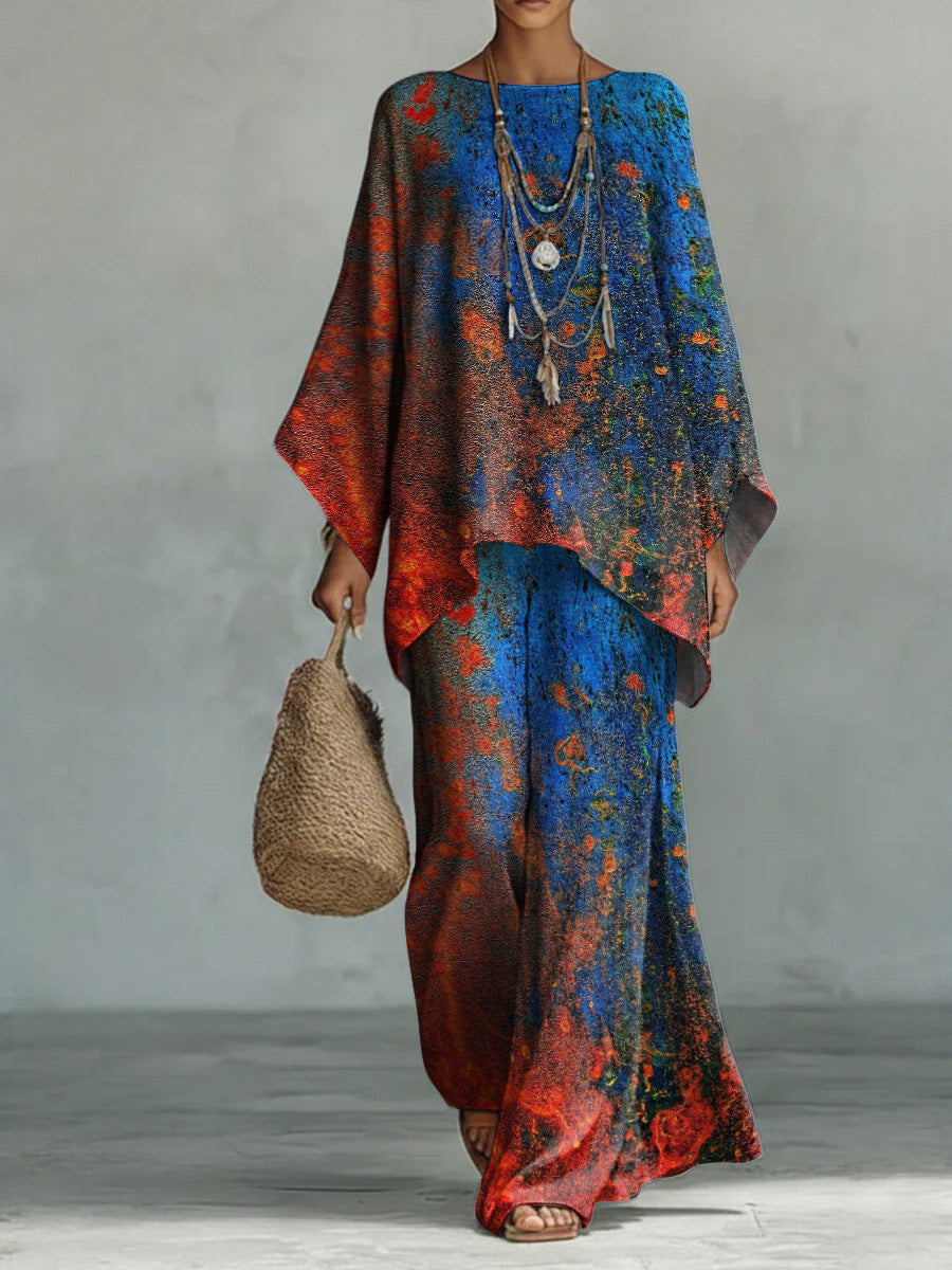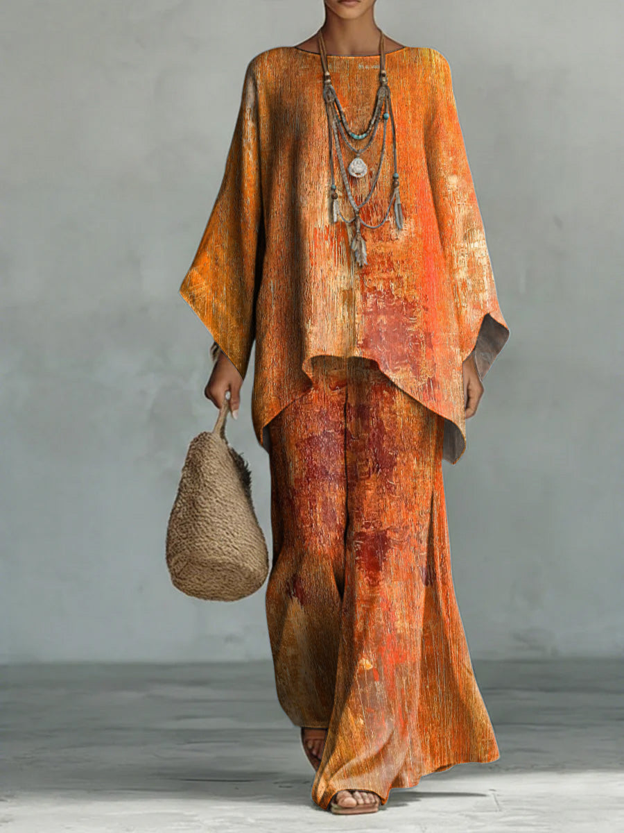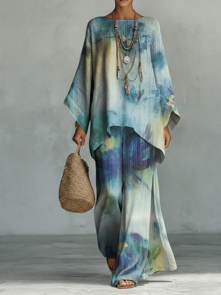 Women's Retro Gradient Art Print Casual Cotton Linen Suits