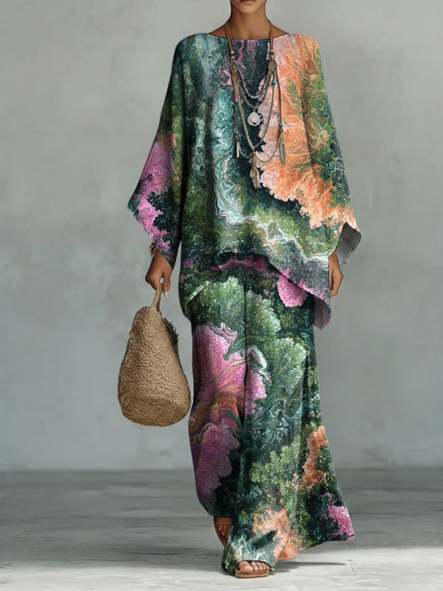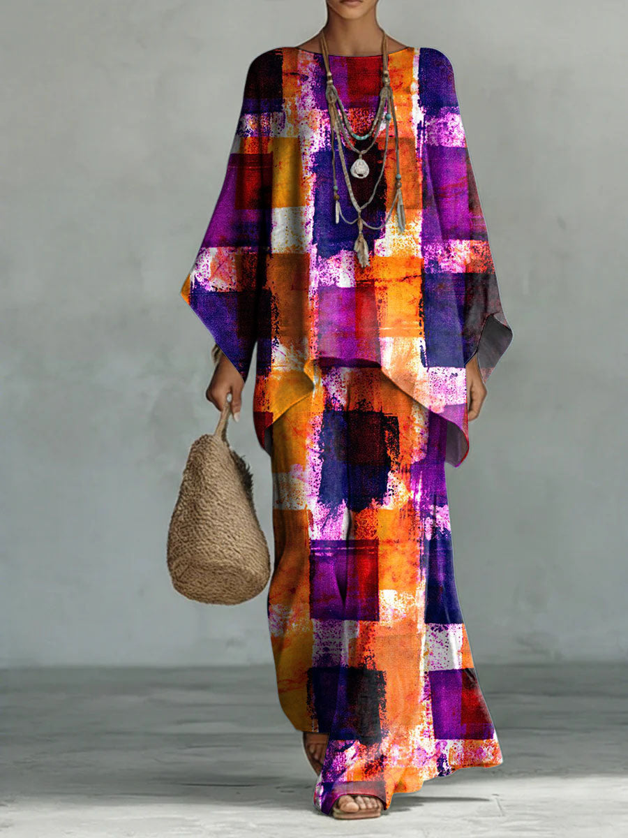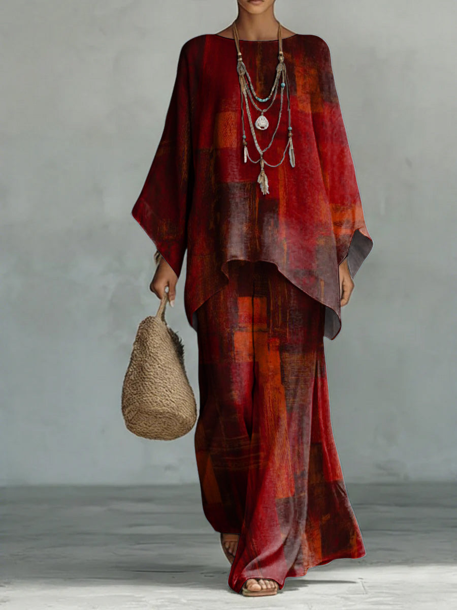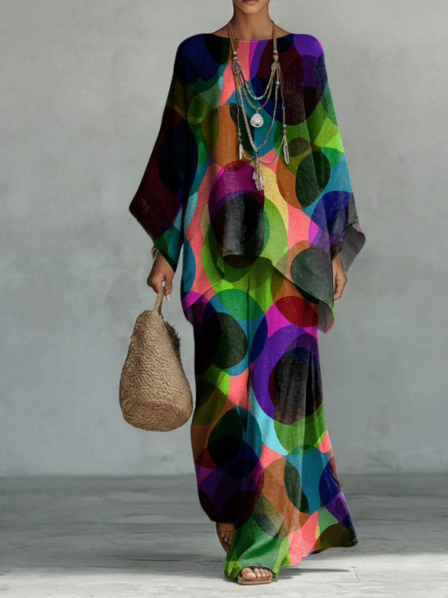 Women's Retro Gradient Art Print Casual Cotton Linen Suits