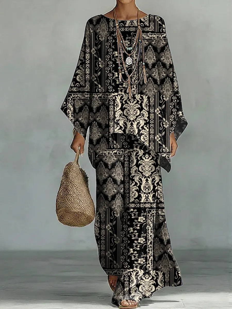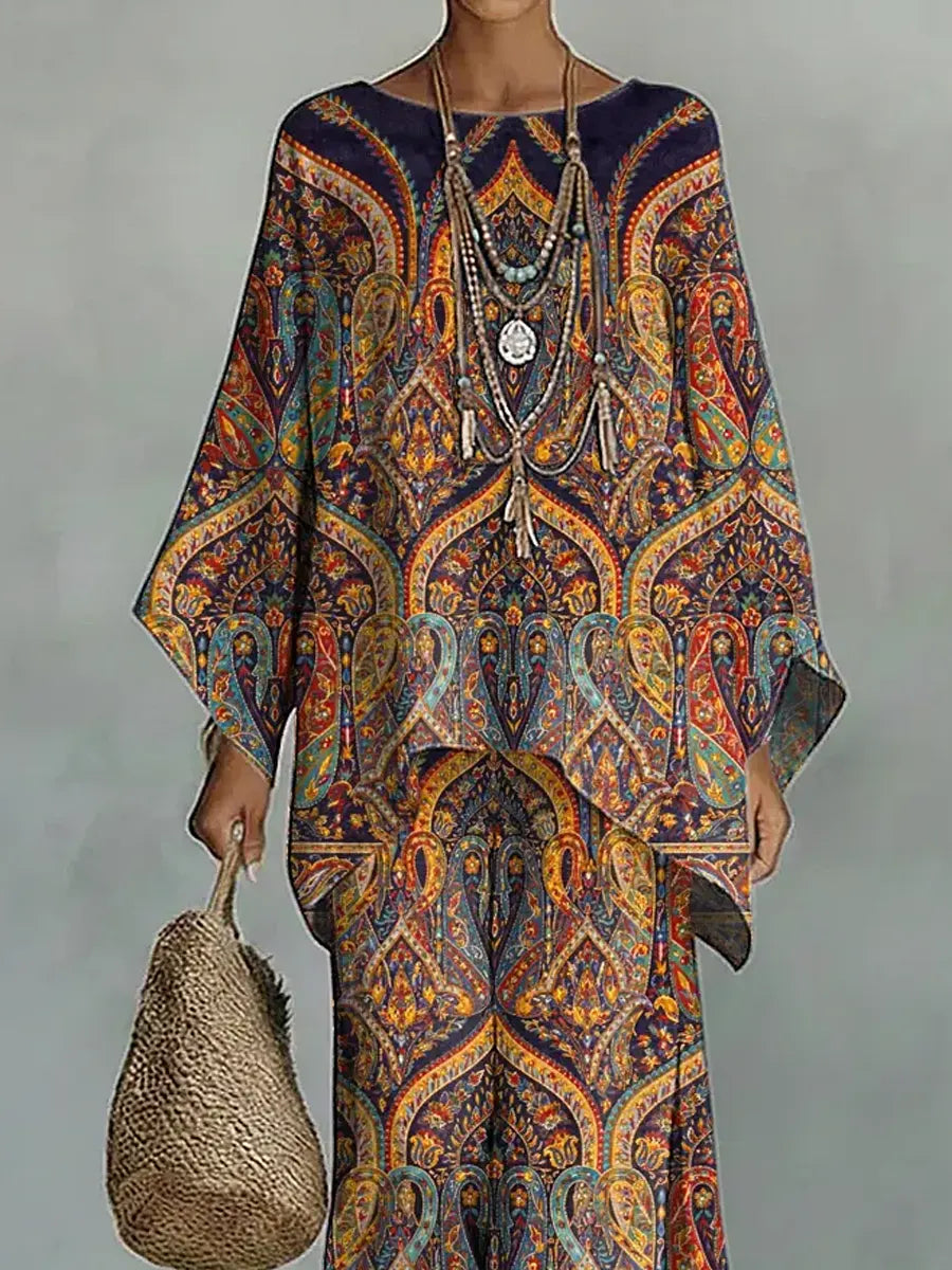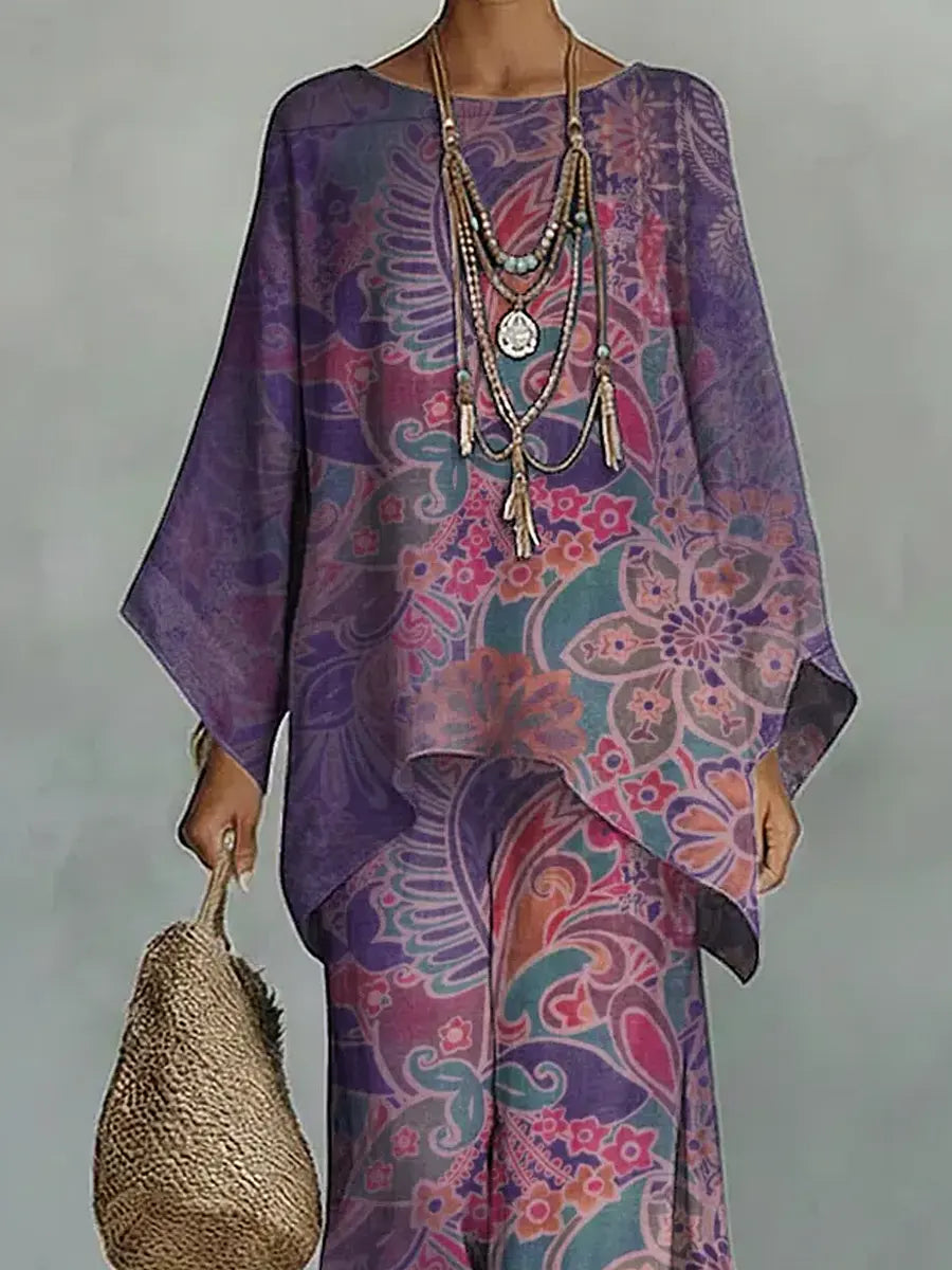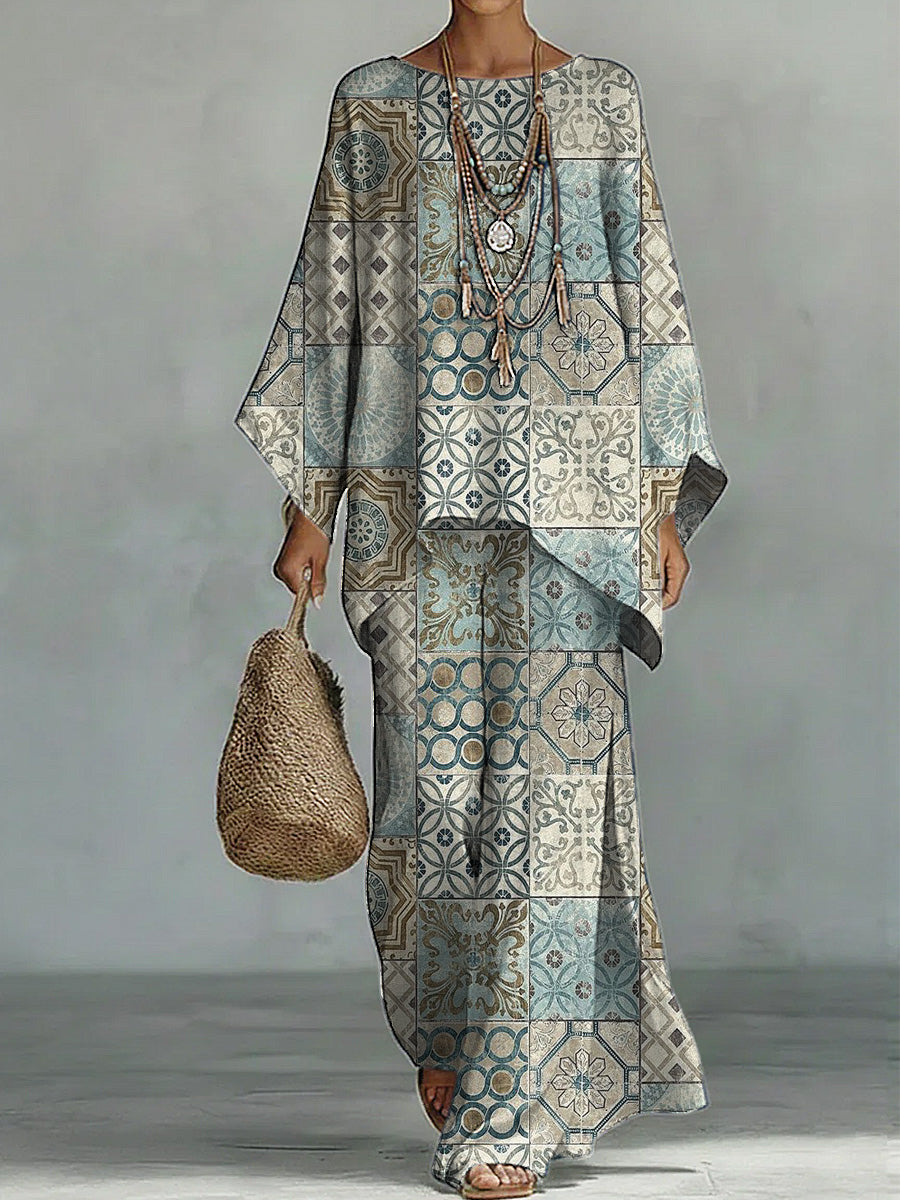 Women's Vintage Art Pattern Print Casual Cotton Linen Suits