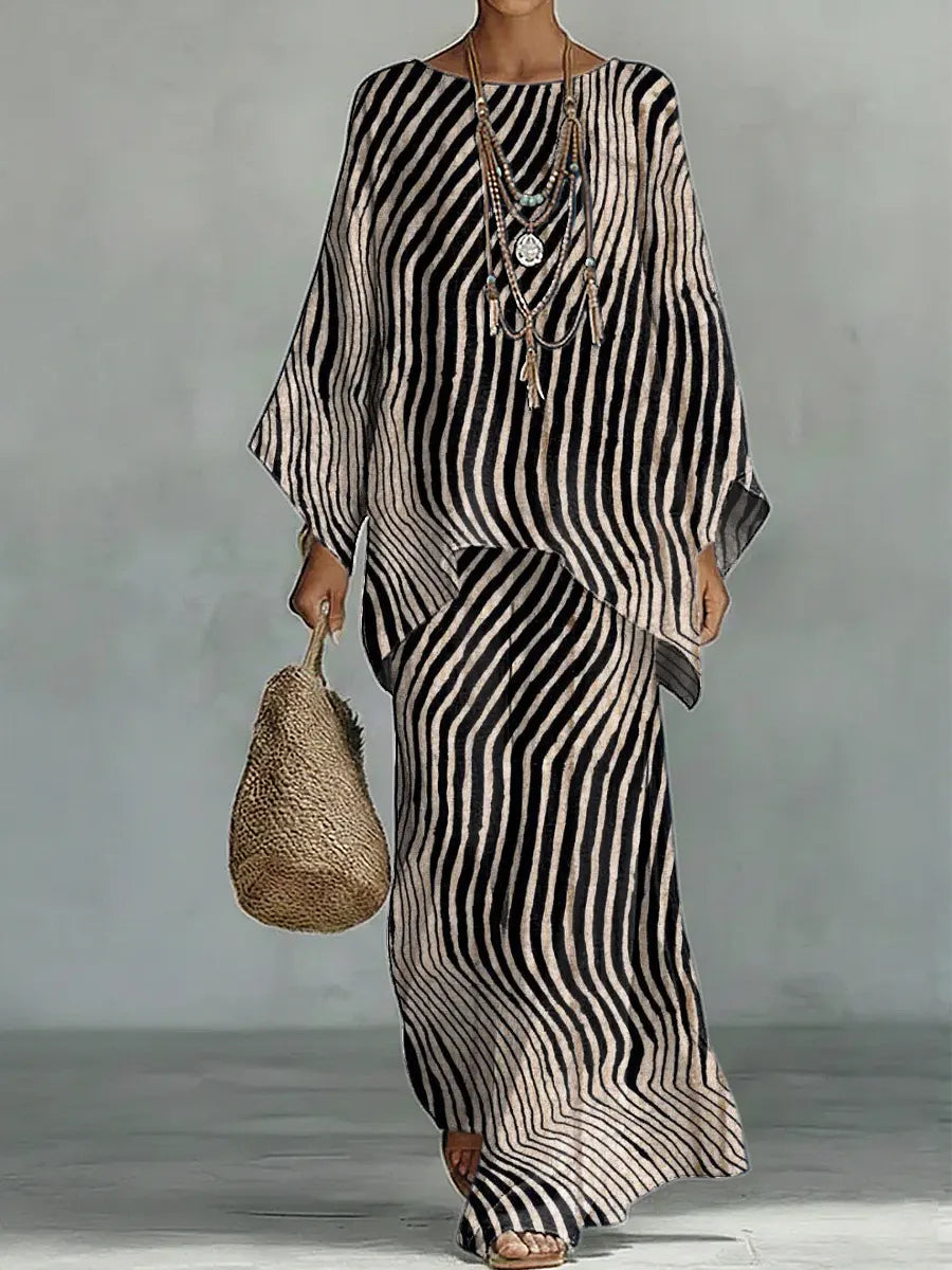 Women's Vintage Colorful Stripes Print Casual Cotton Linen Suits