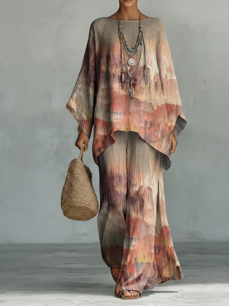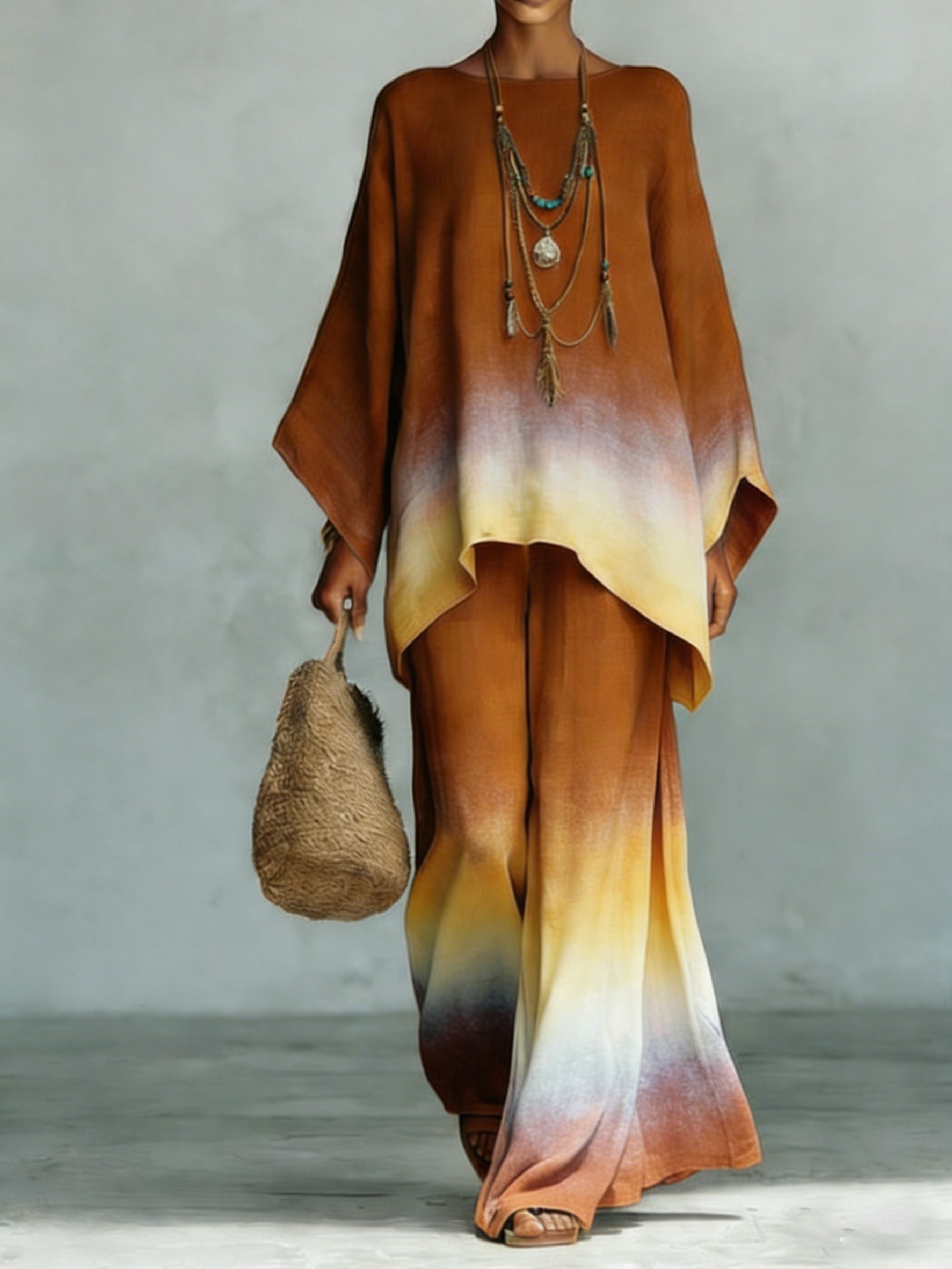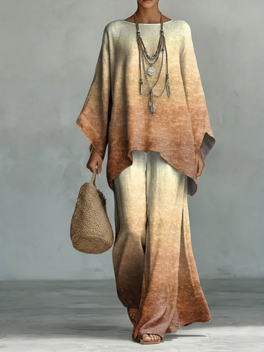 Women's Gradient Pattern Art Print Casual Cotton Linen Suits