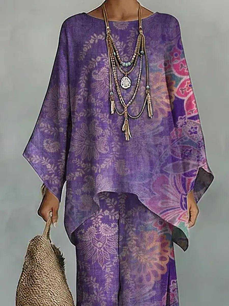 Women's Vintage Pattern Art Print Casual Cotton Linen Suits