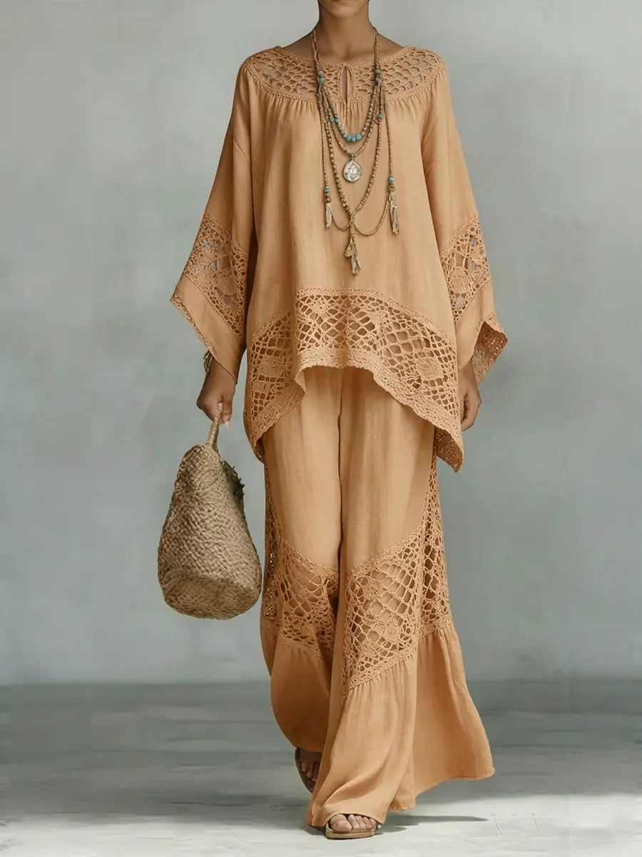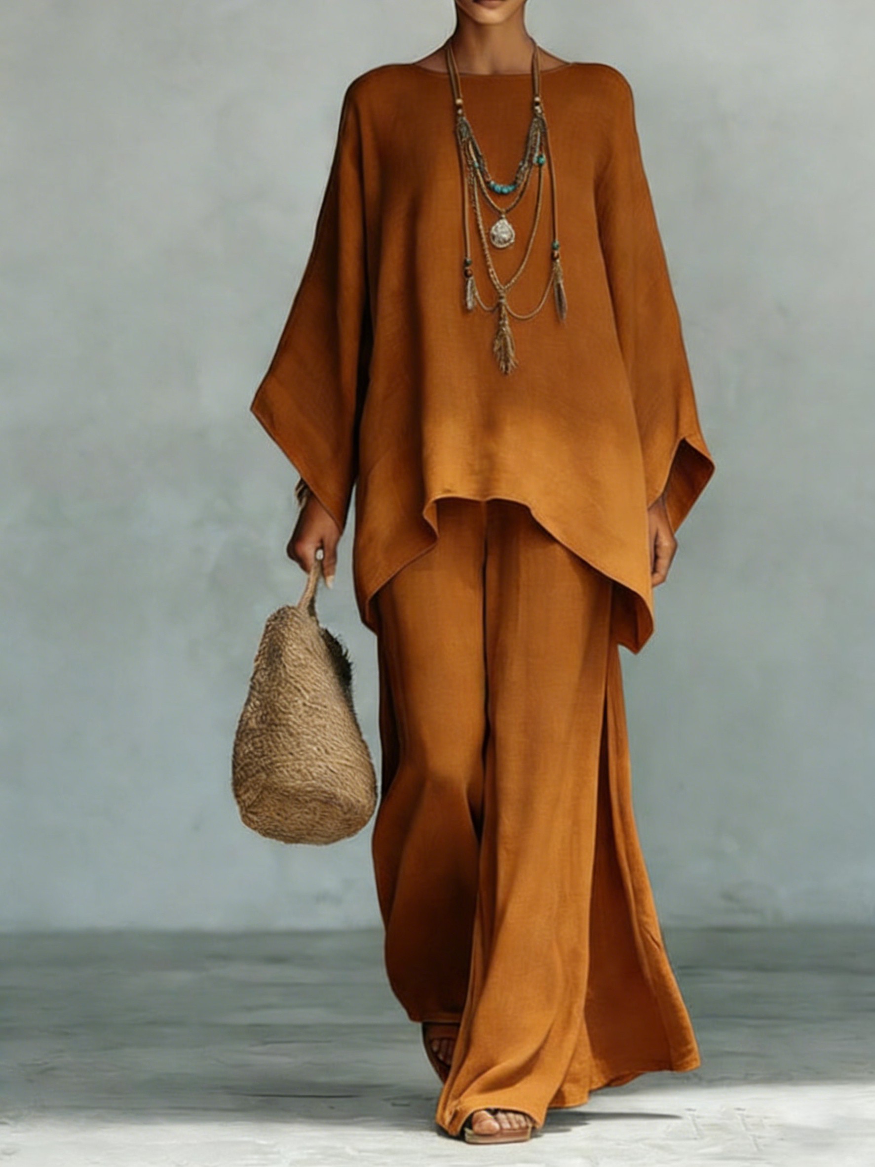 Women's Vacation Art Comfortable Loose Cotton Linen Wide-leg Pants Two-piece Set