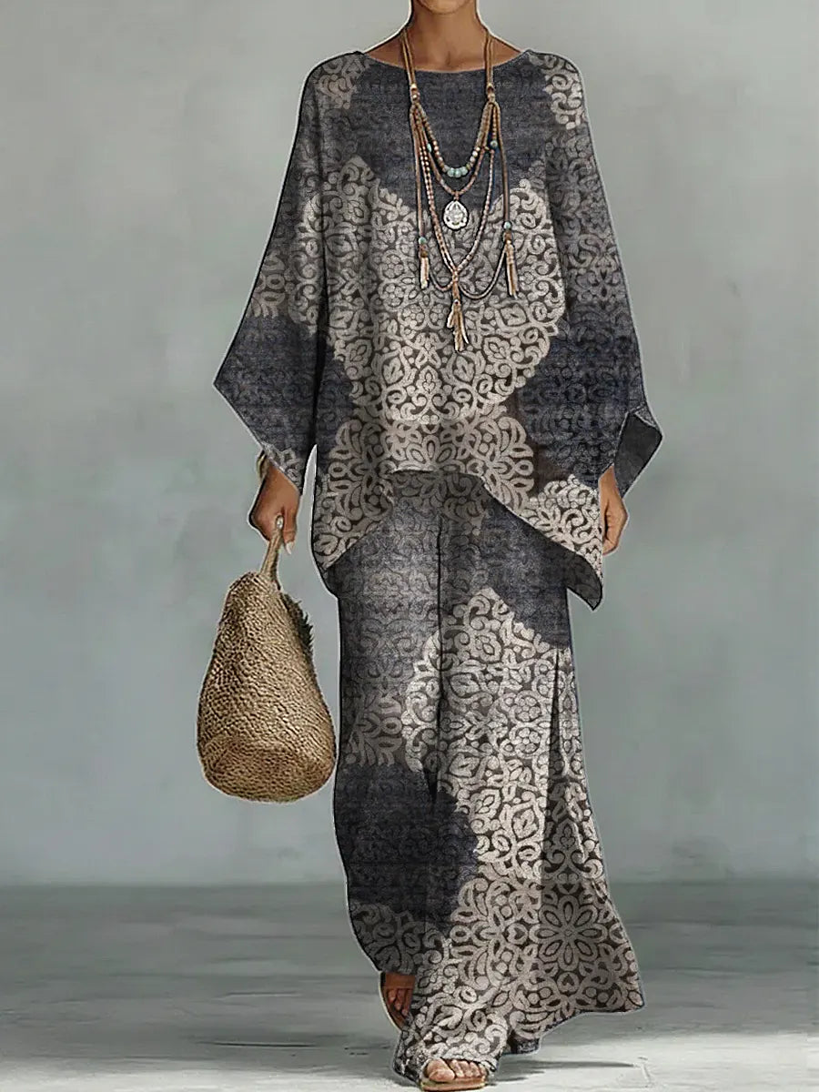 Women's Vintage Geometric Pattern Art Print Casual Cotton Linen Suits