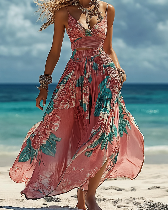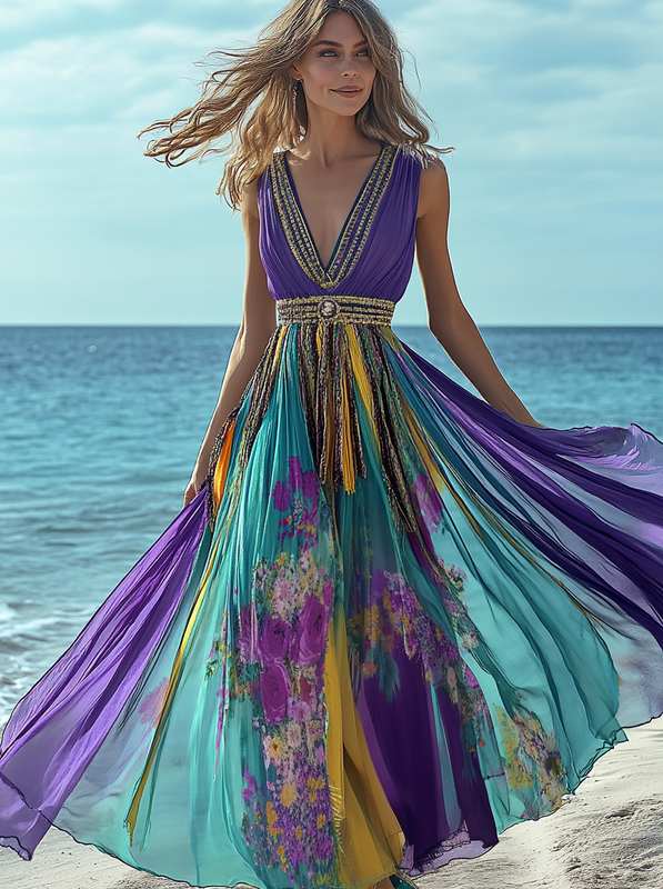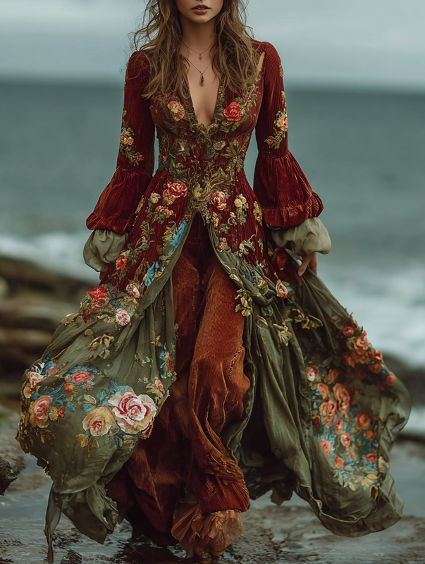Women's summer vacation floral 3D embroidery kaftan 5a88