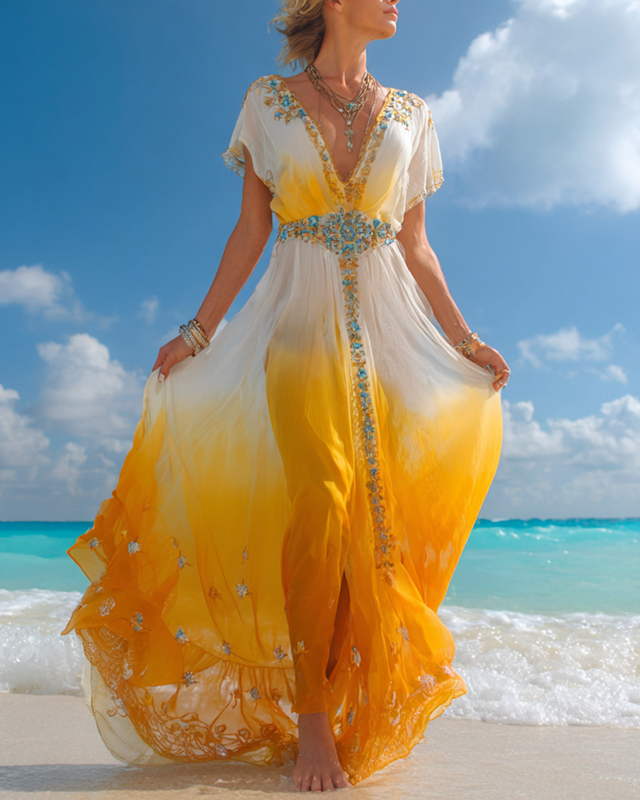 Summer Vacation Ombre Lace Turquoise Beaded Dress ffac