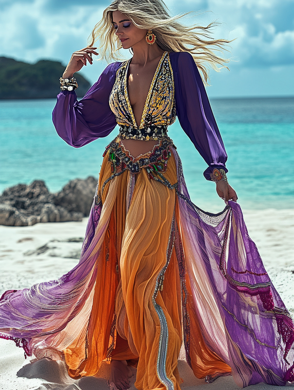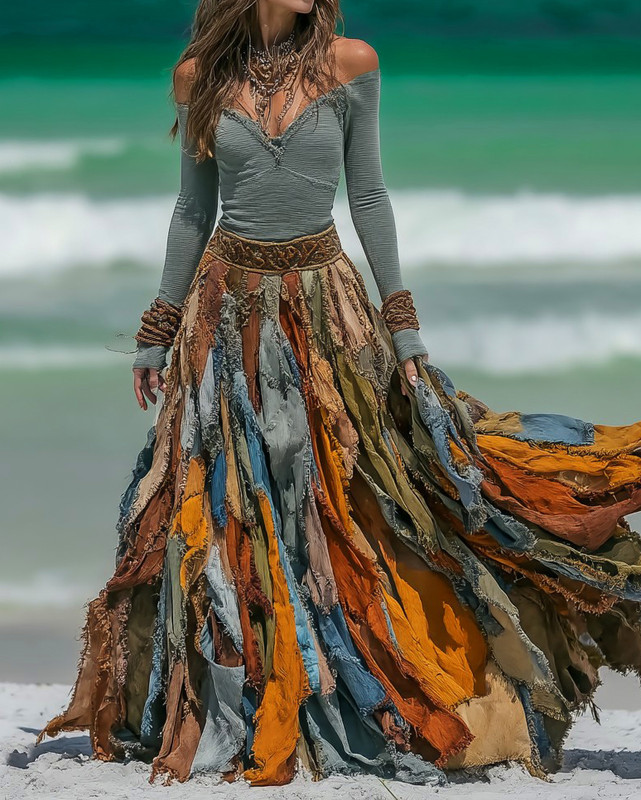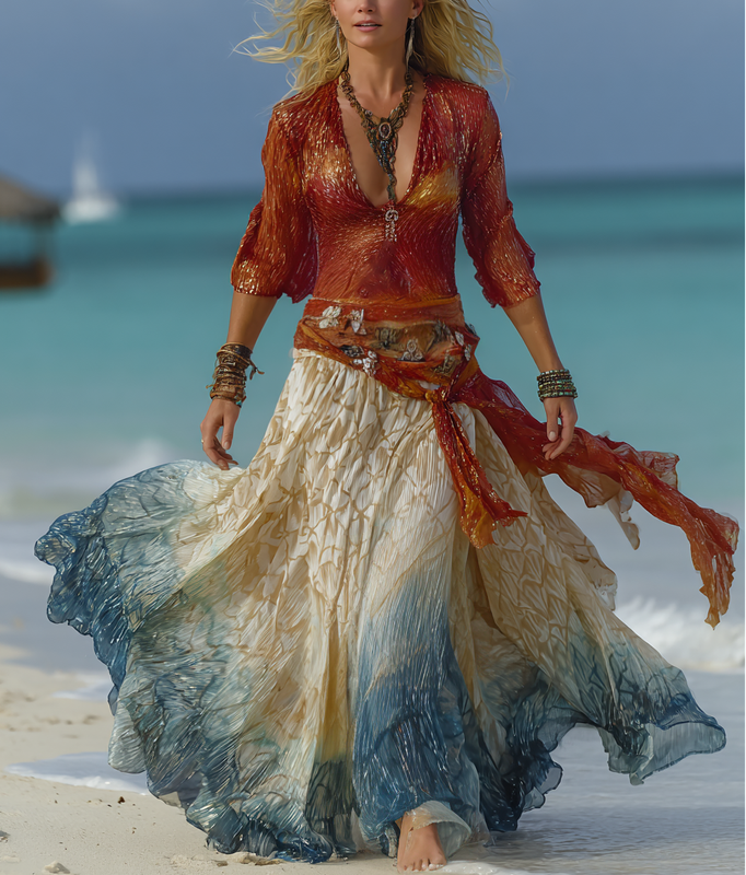 Elegant Seaside Irregular Patchwork Top + Skirt Two Piece Set ec34