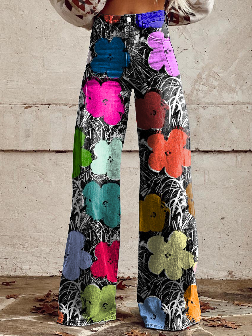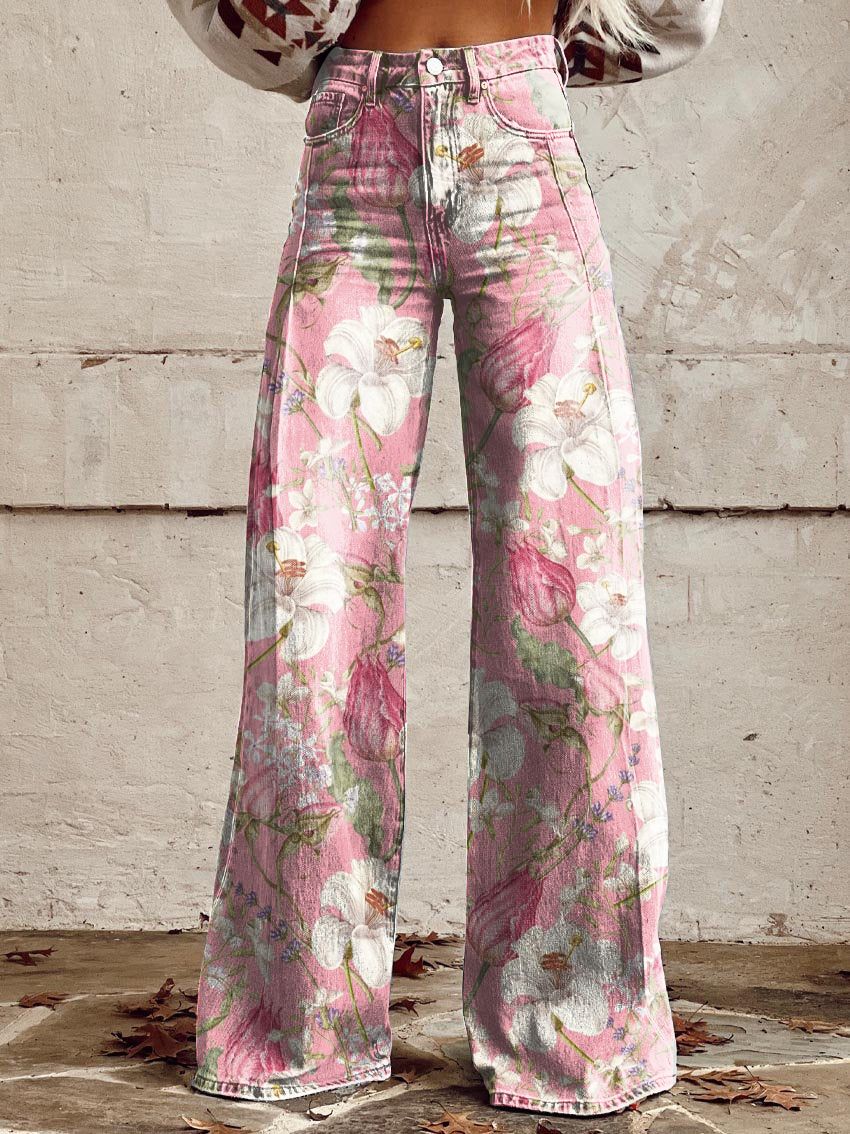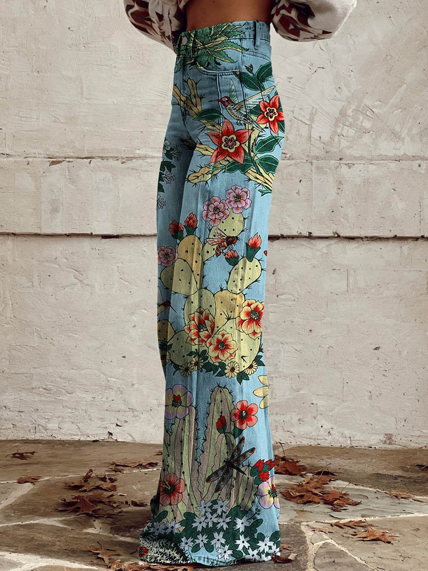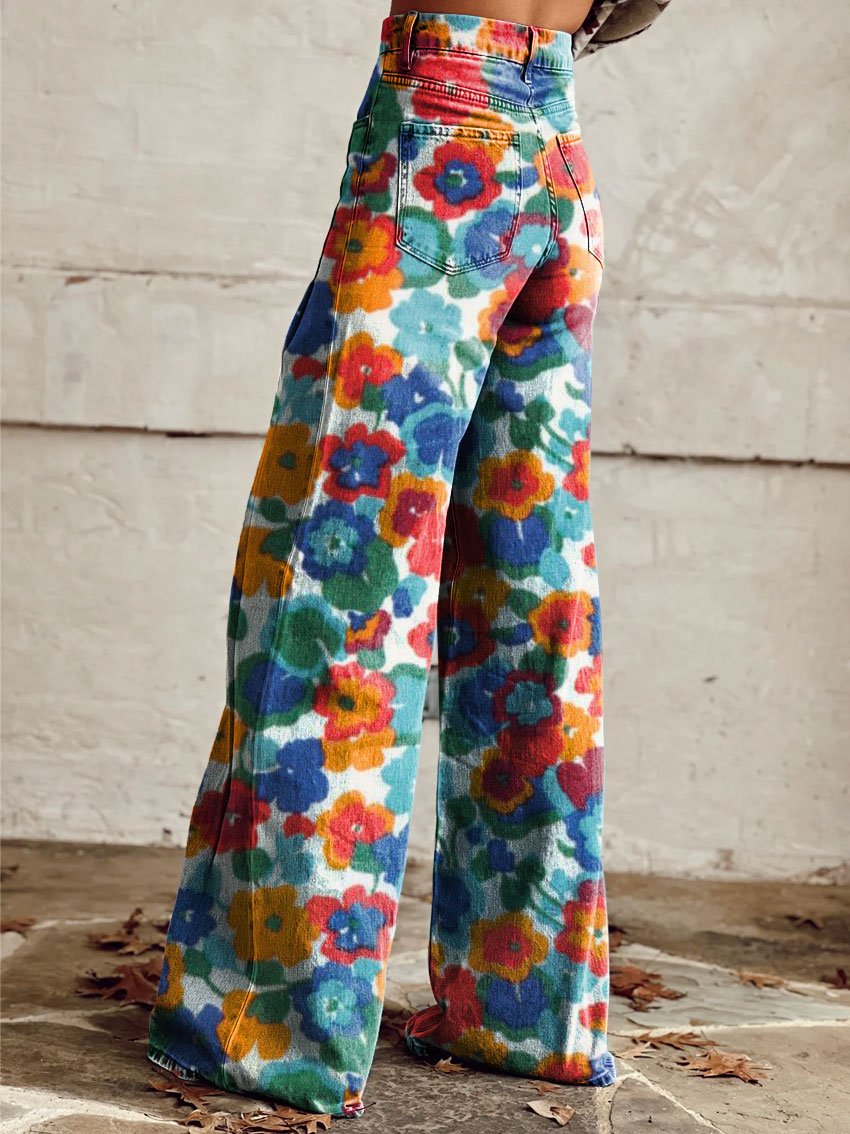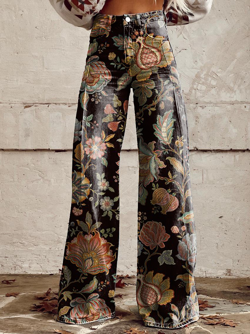 Women's Retro Floral Art Casual Wide Leg Pants
