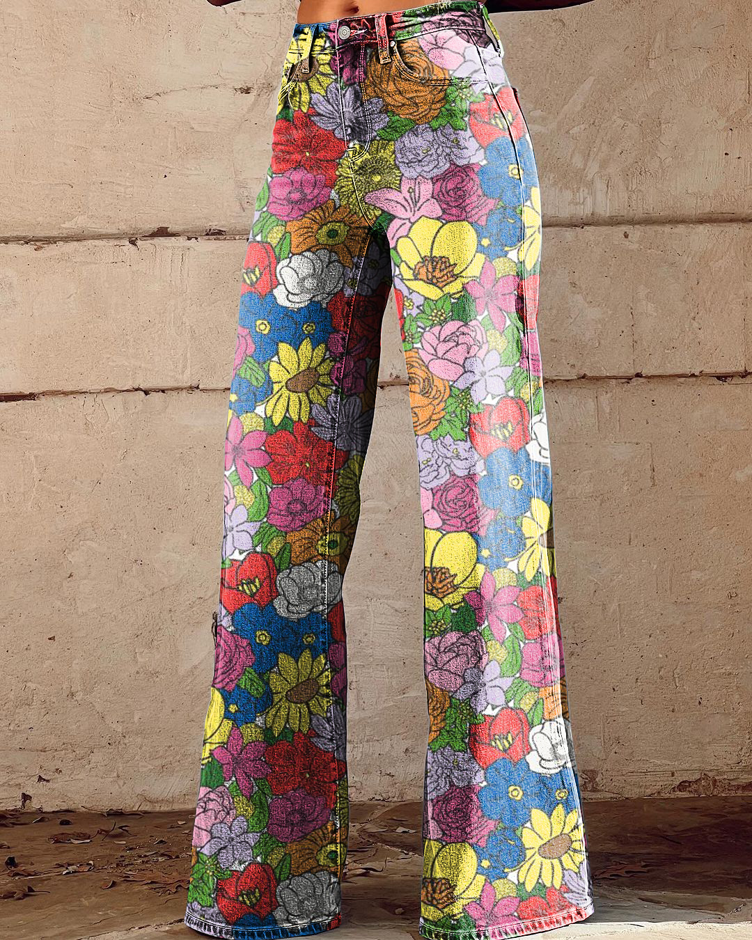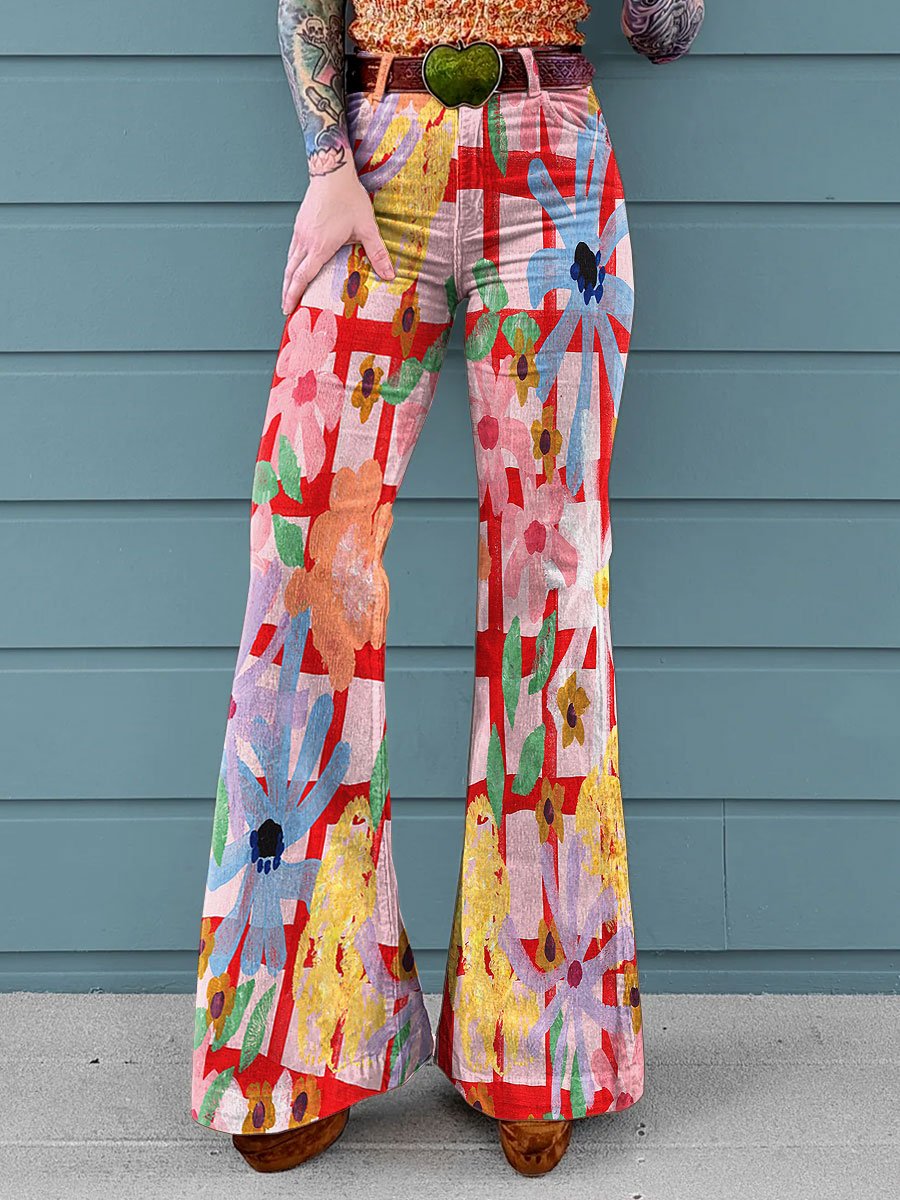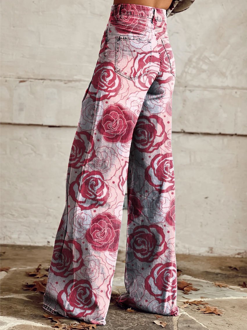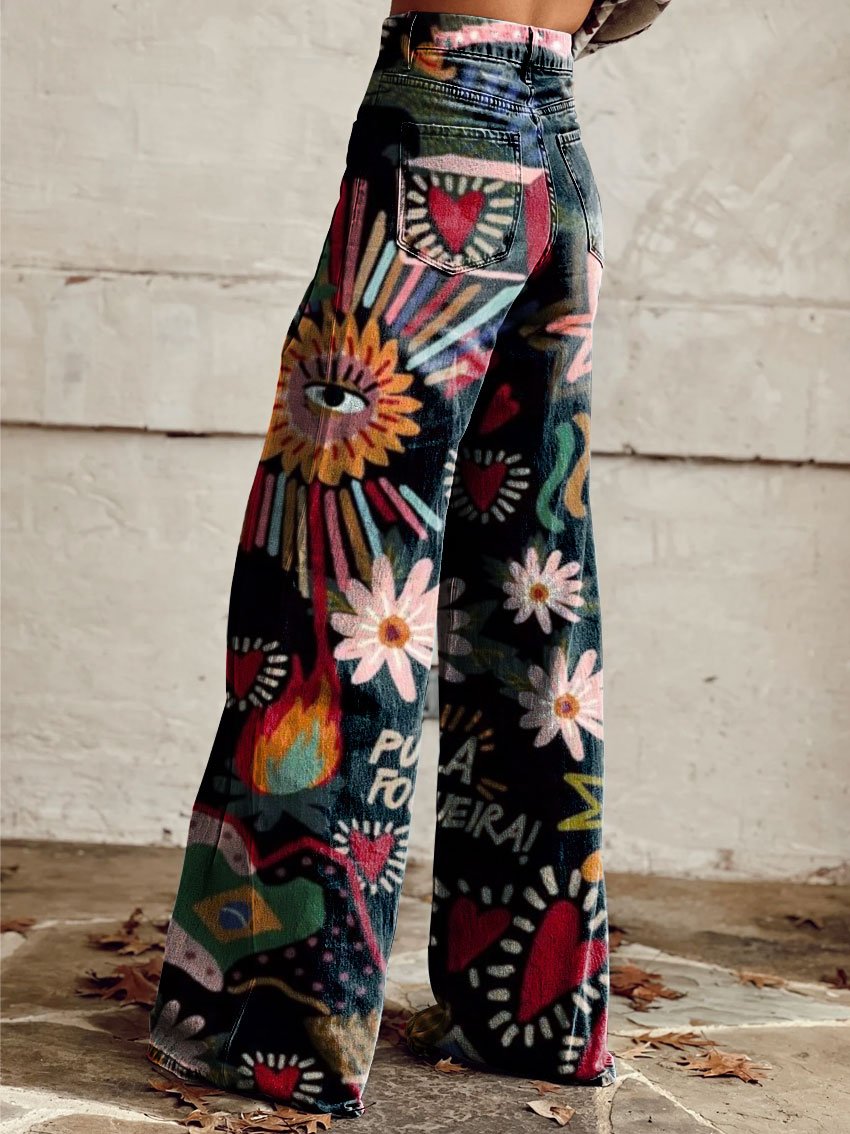 Women's Retro Floral Art Casual Wide Leg Pants