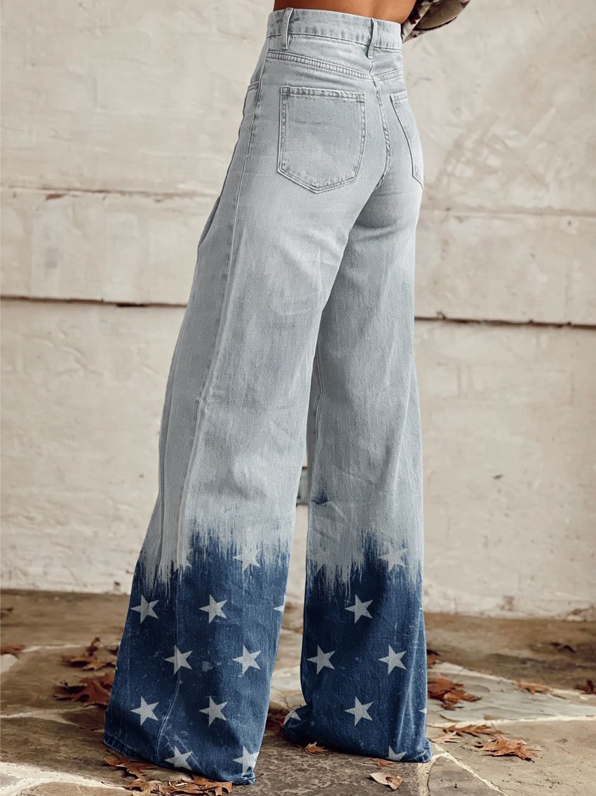 Women's Vintage Stars Print Casual Wide Leg Pants