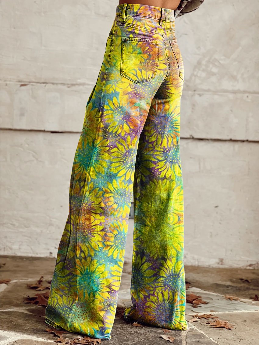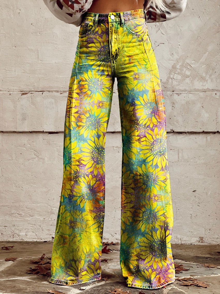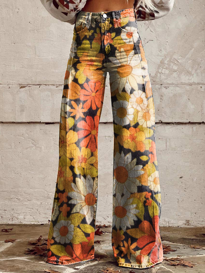 Women's Vintage Daisy Art Casual Wide Leg Pants