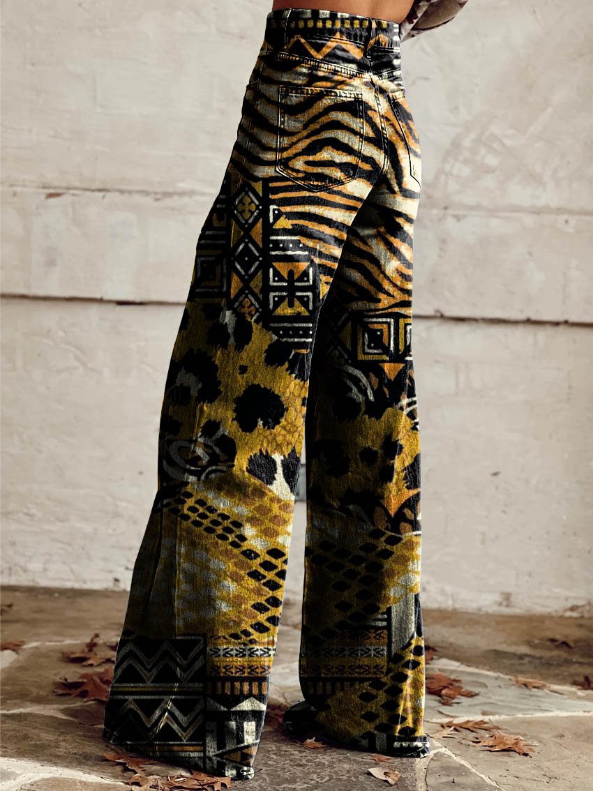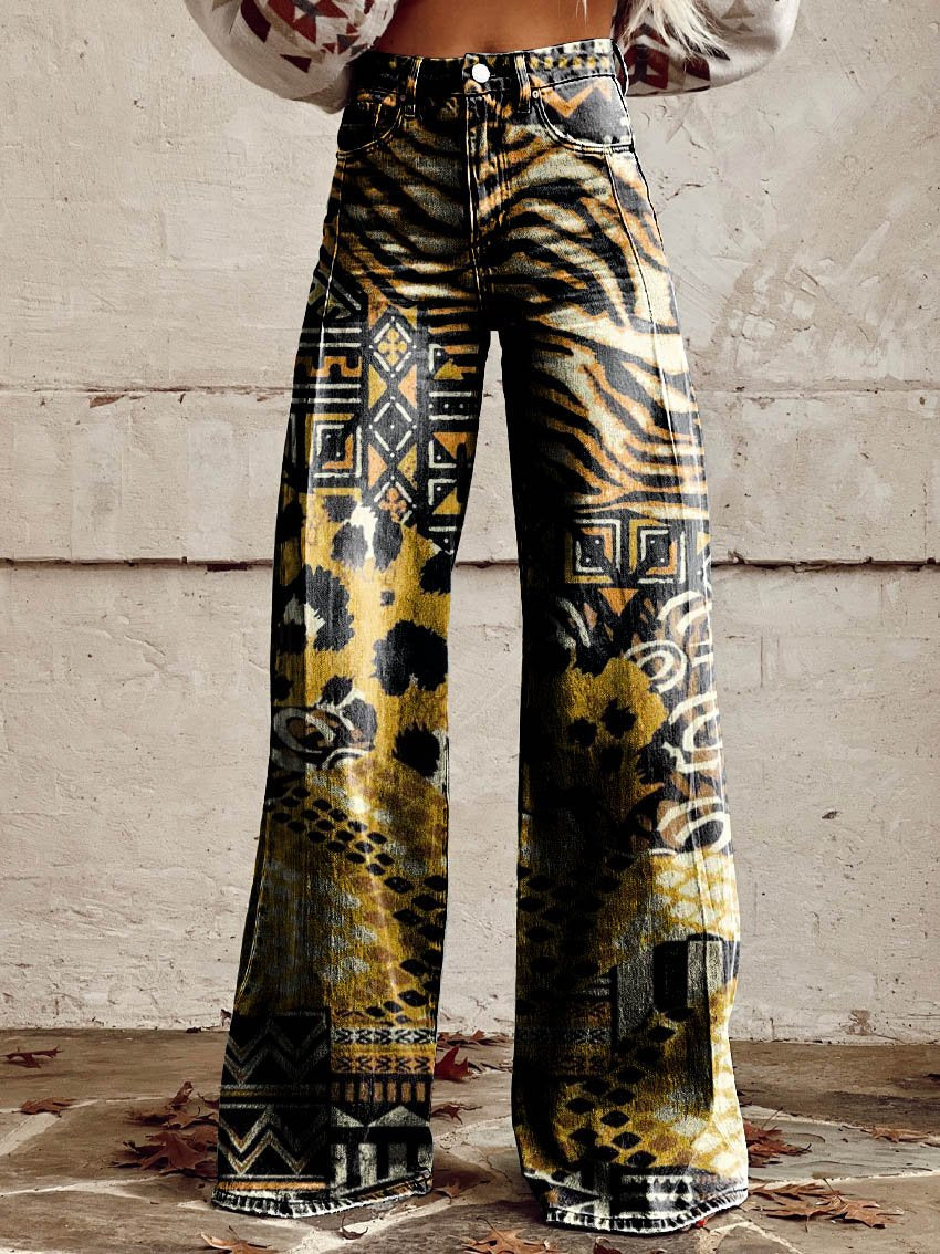 Women's Retro Colorful Leopard Print Art Casual Wide Leg Pants