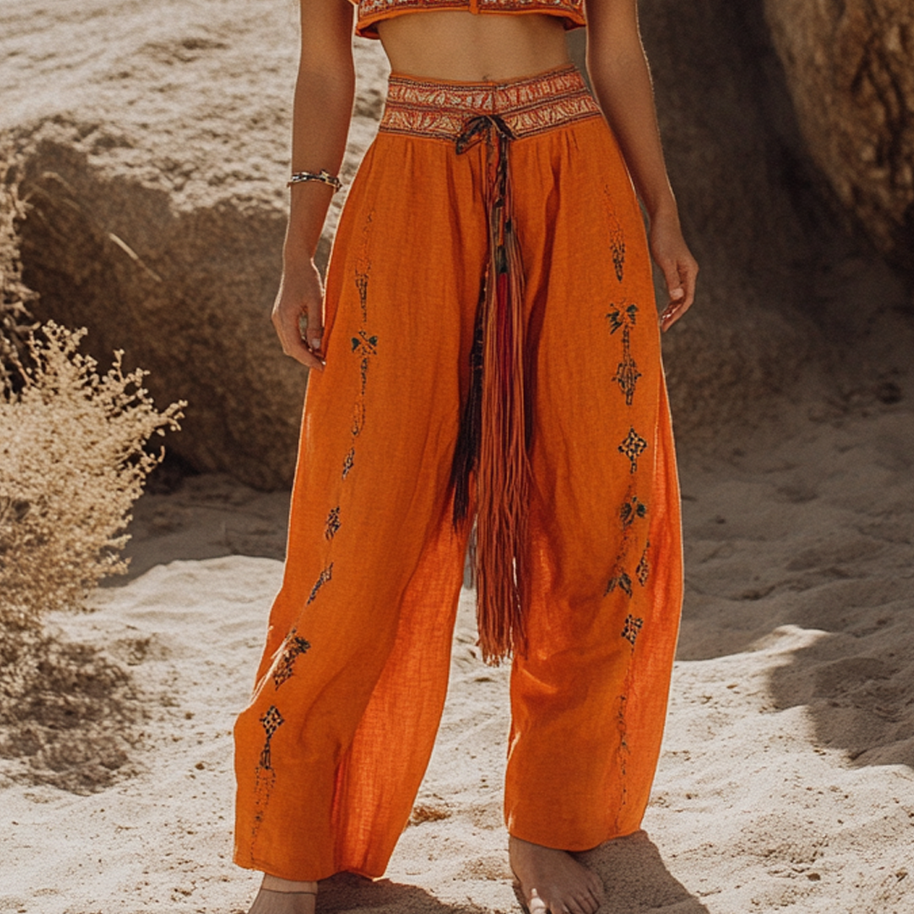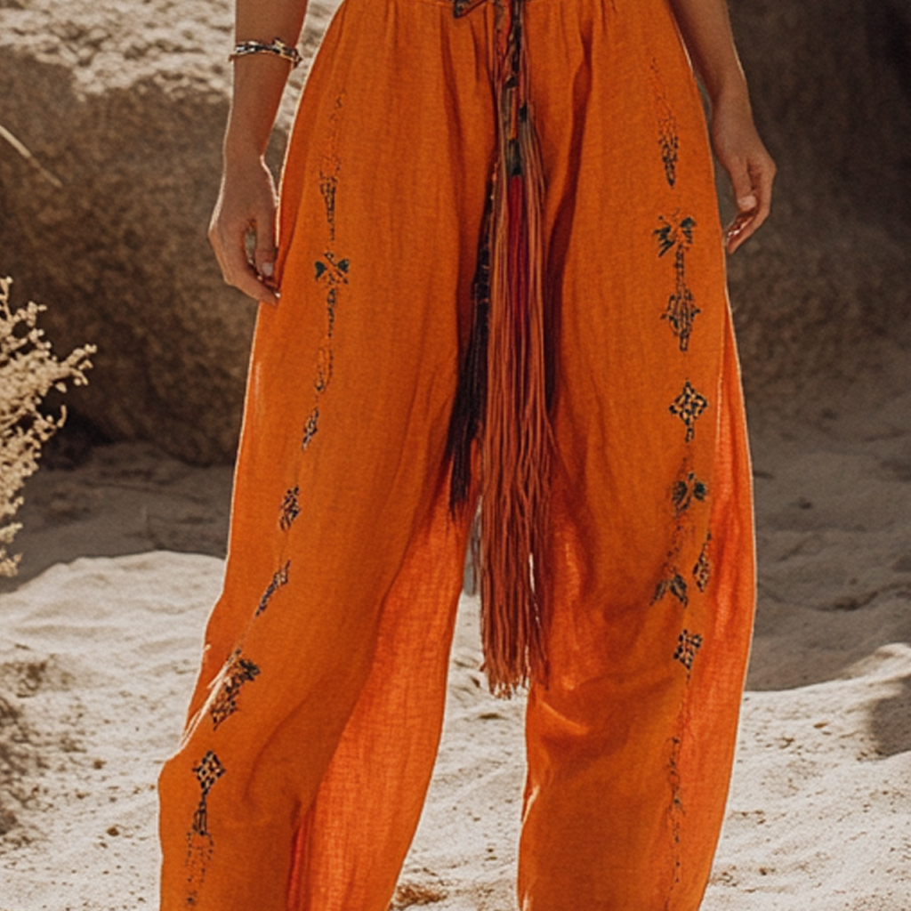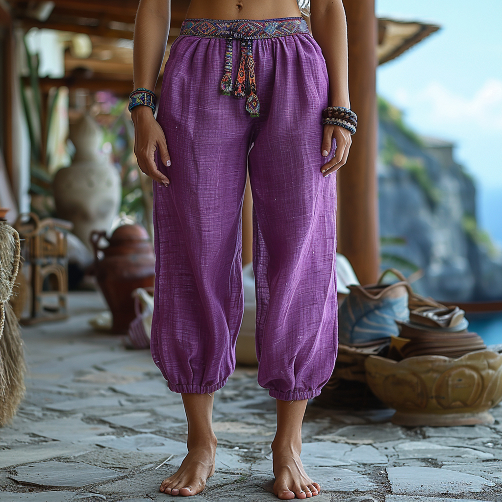 Bohemian Linen Print Ethnic Holiday Casual Pants