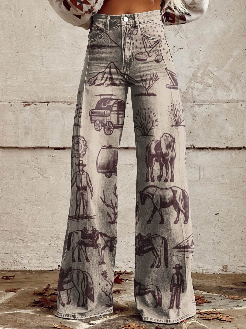 Women's Western Cowboy Print Casual Wide Leg Pants