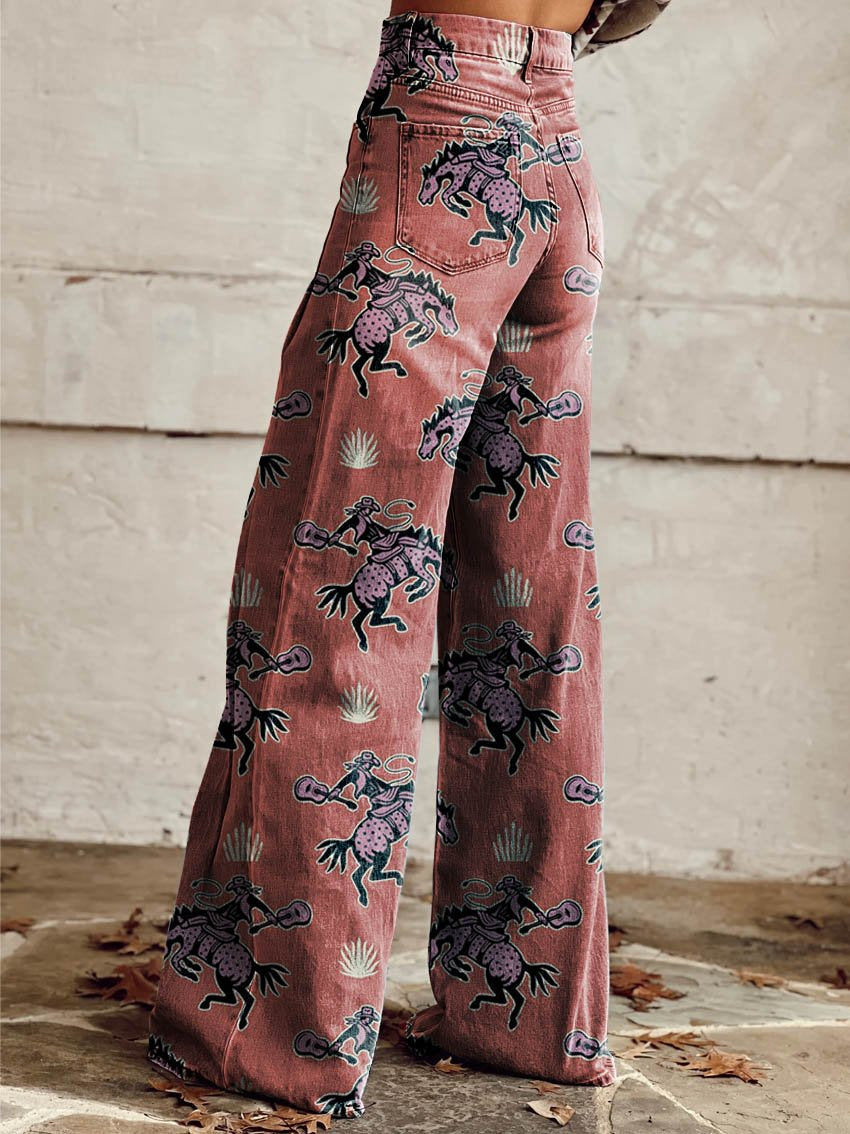 Women's Cowboy Race Print Casual Wide Leg Pants