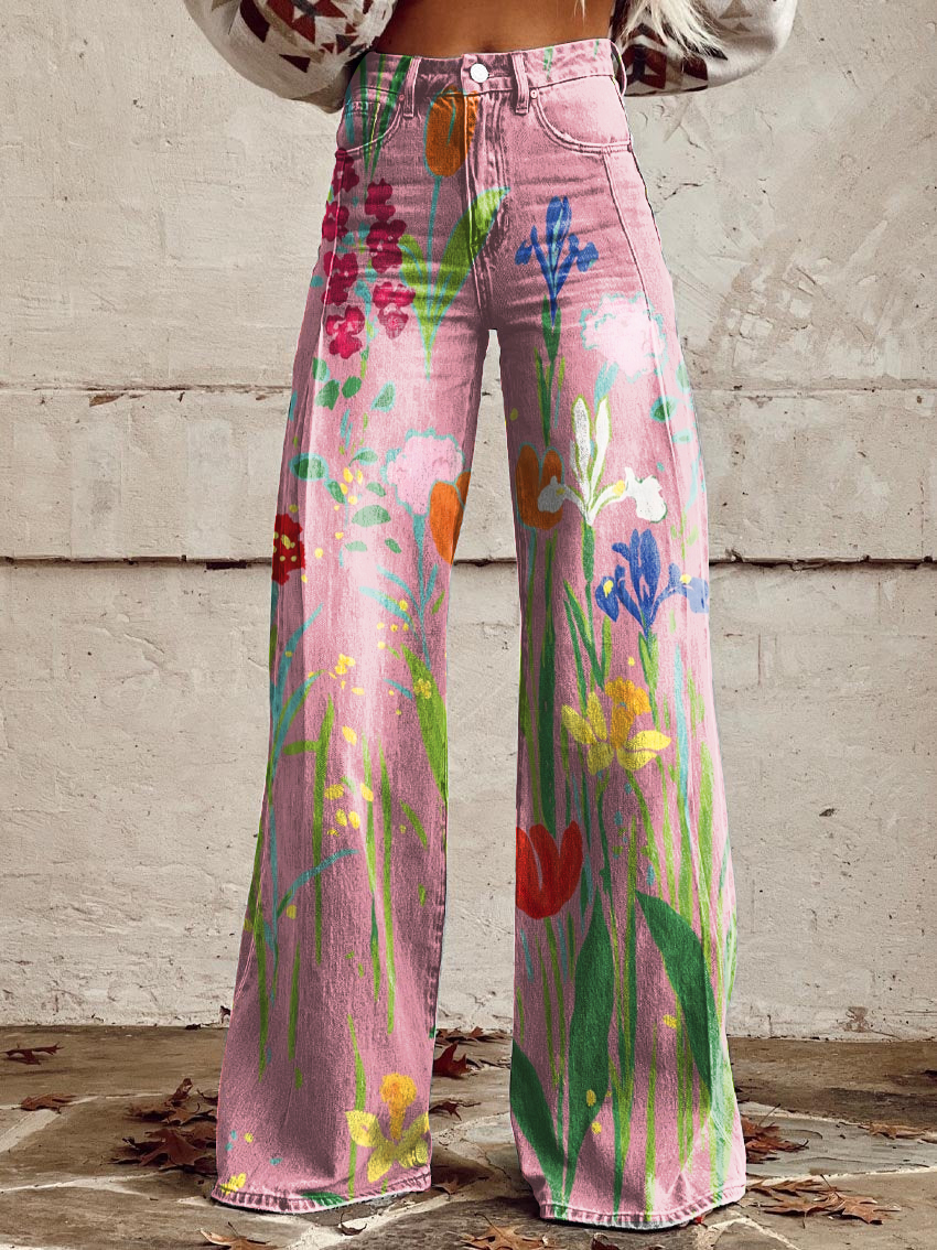 Women's Spring Vibe Western Style Floral Seamless Pattern Printed Casual Wide Leg Pants