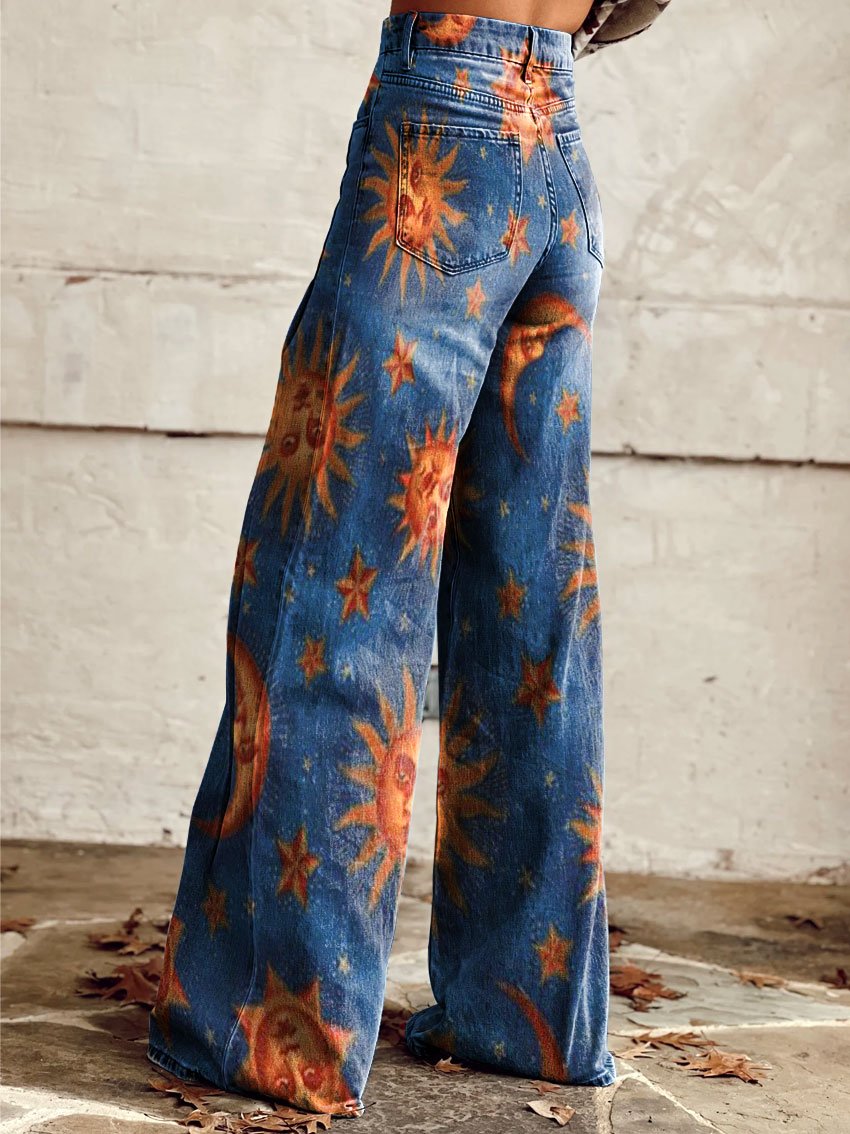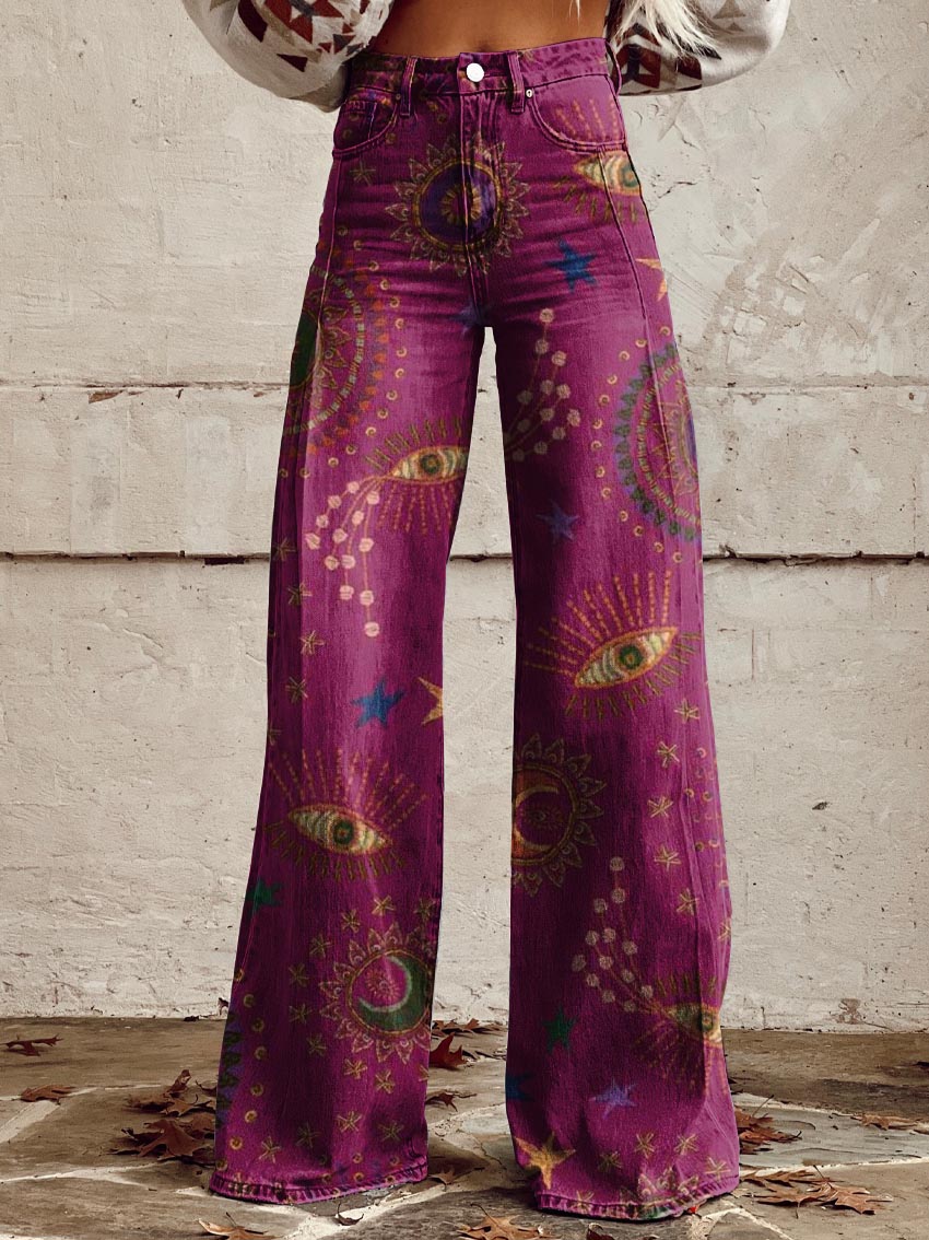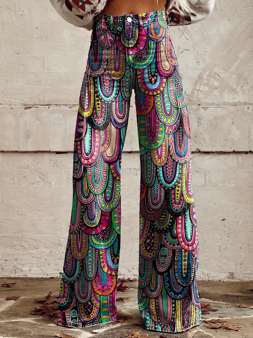Women's Vintage Lrregular Totem Print Casual Wide Leg Pants