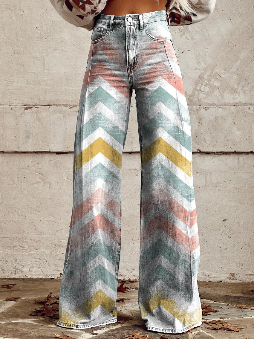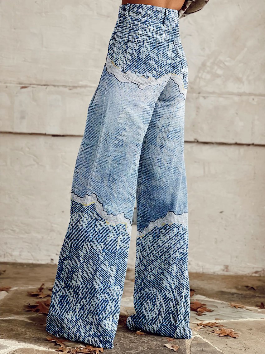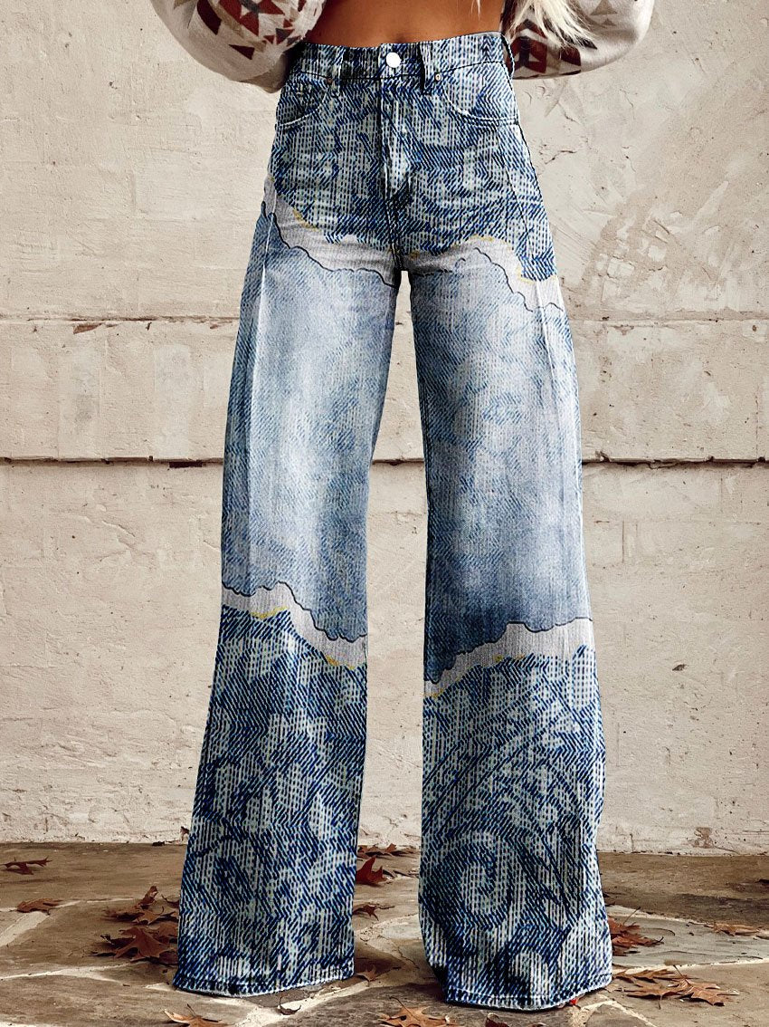 Women's Vintage Texture Print Casual Wide Leg Pants
