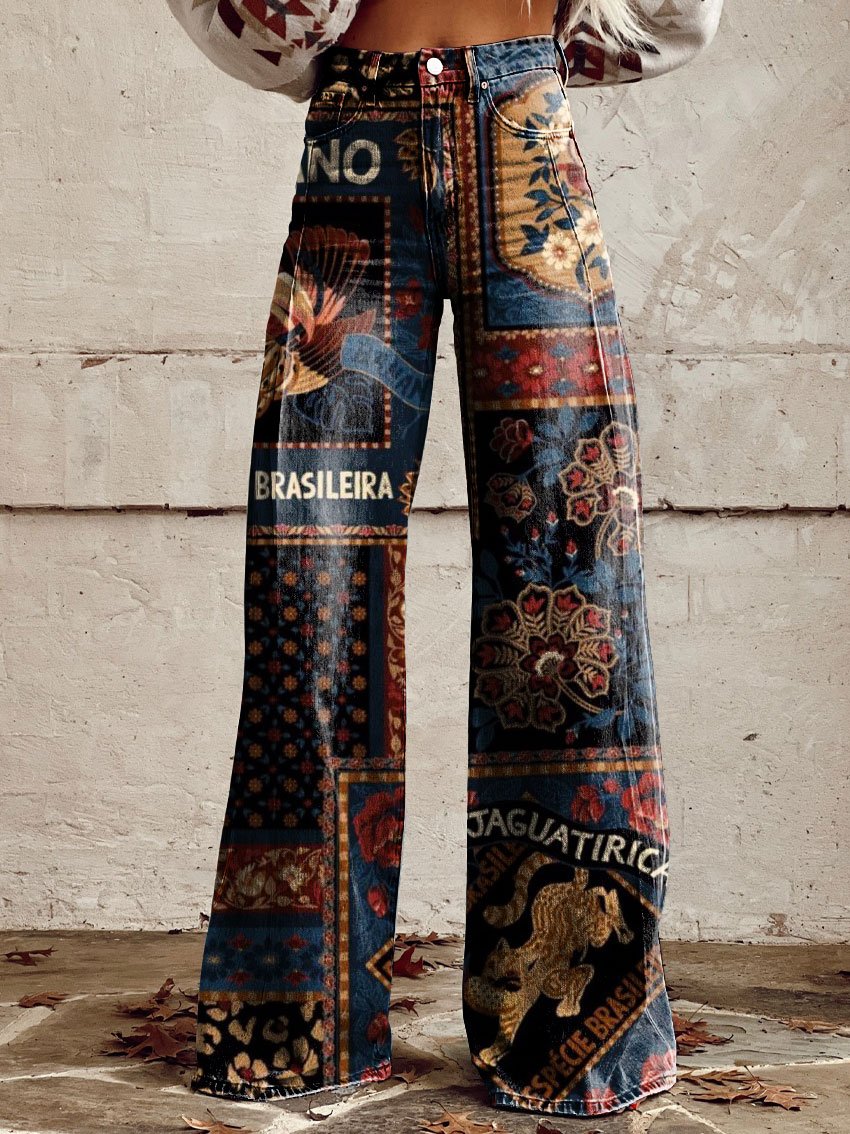Women's Vintage Print Casual Wide Leg Pants