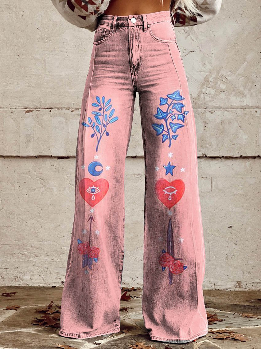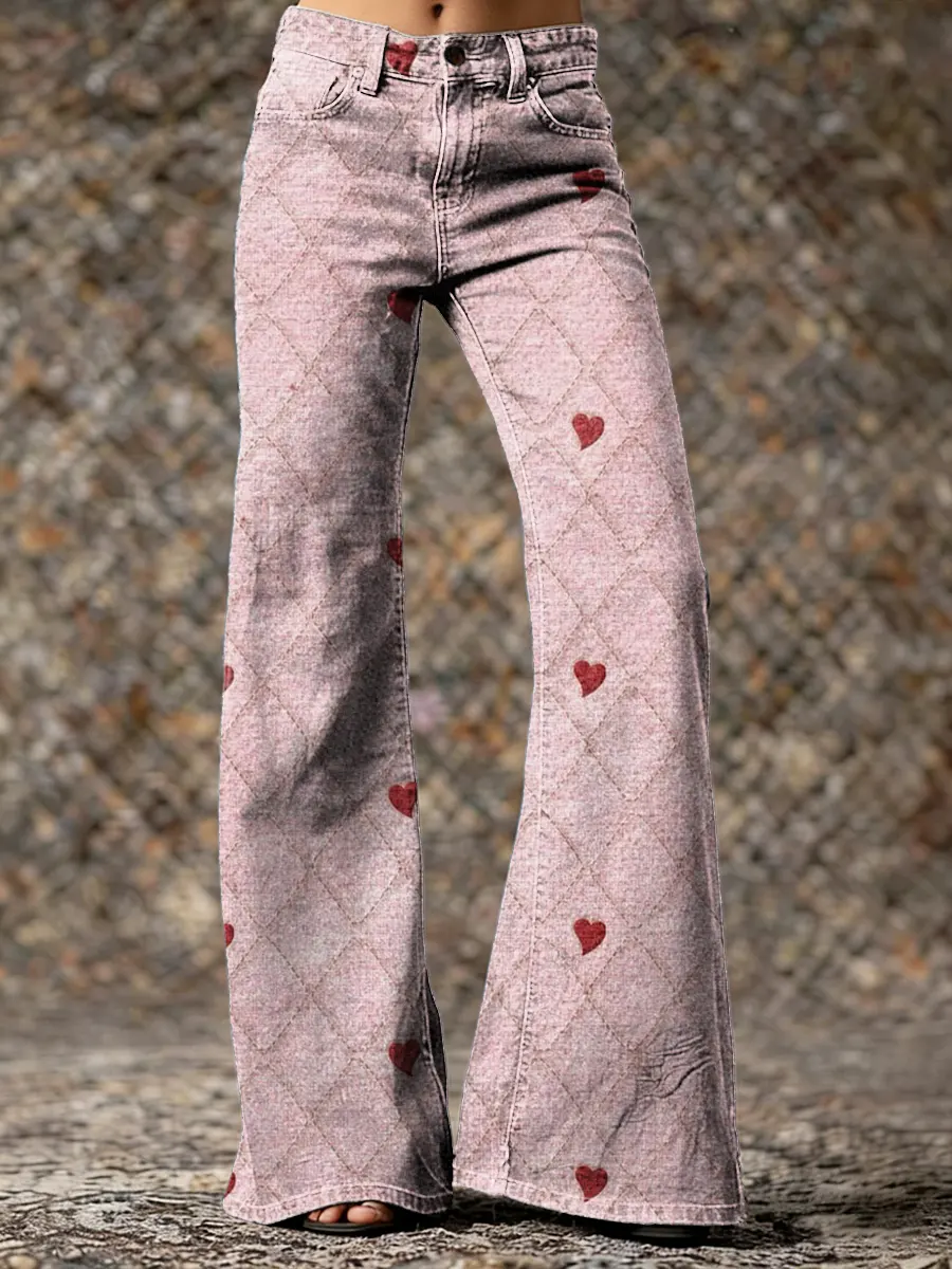 Women's Red Heart Art Print Washed Cotton Pants