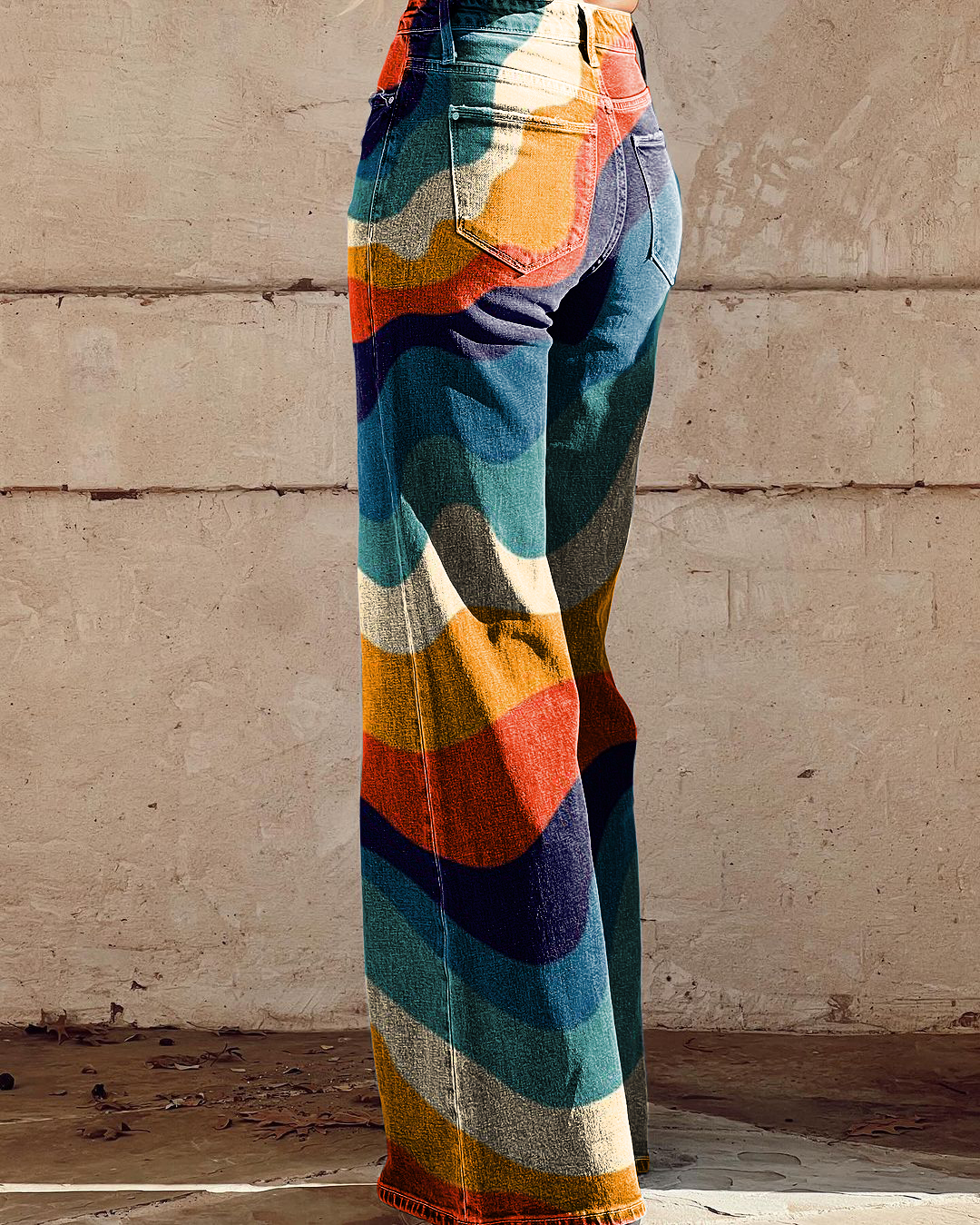 Women's Retro Abstract Art Print Colorblock Wide Leg Pants
