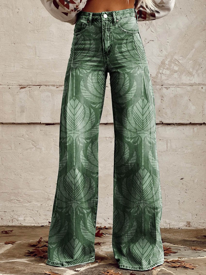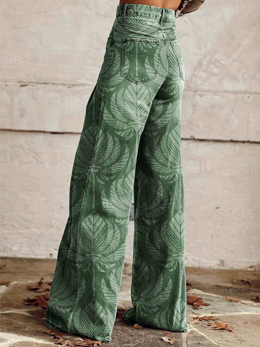 Women's Green Print Casual Wide Leg Pants