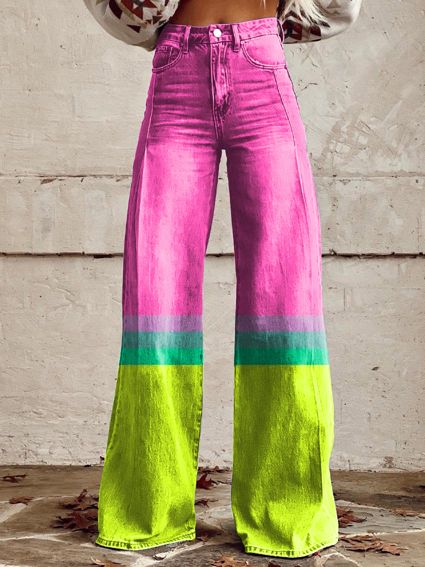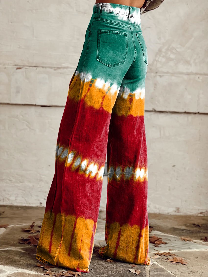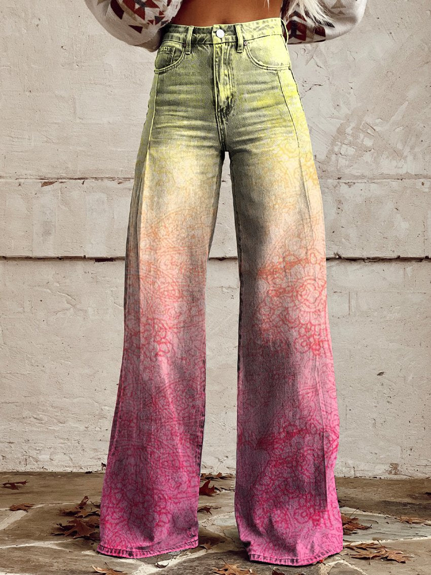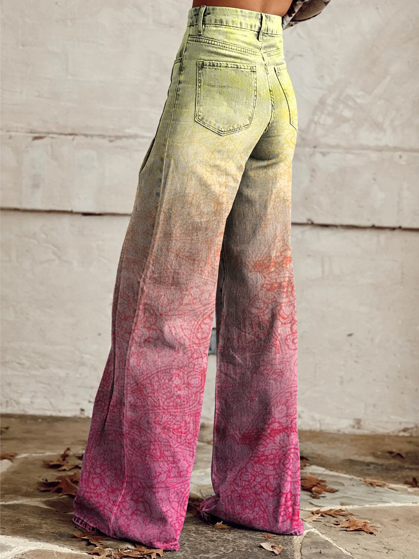 Women's Vintage Gradient Color Print Casual Wide Leg Pants
