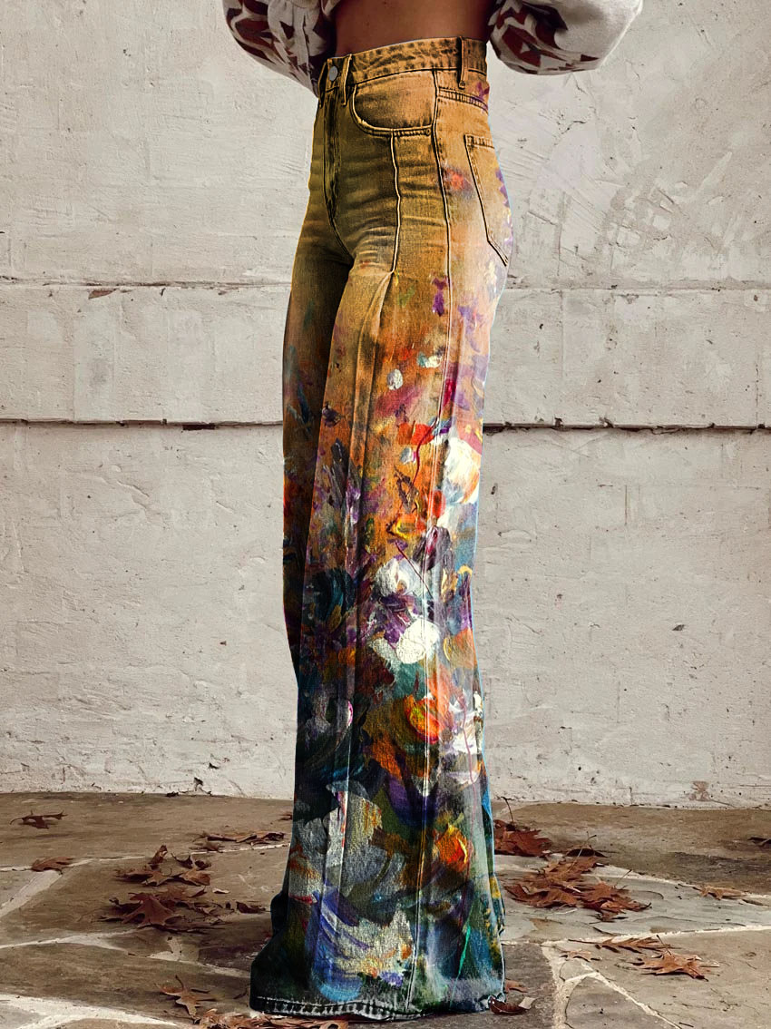 Women's Vintage Floral Art Casual Wide Leg Pants