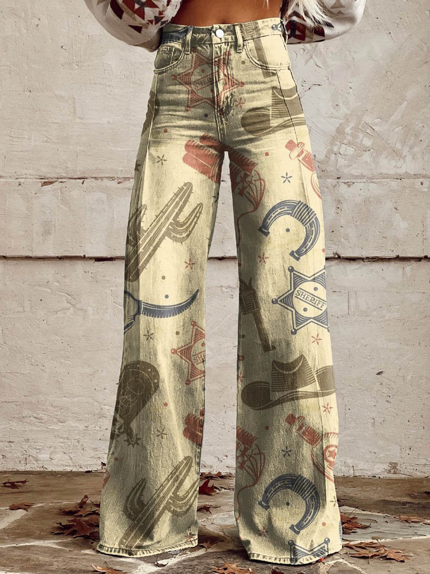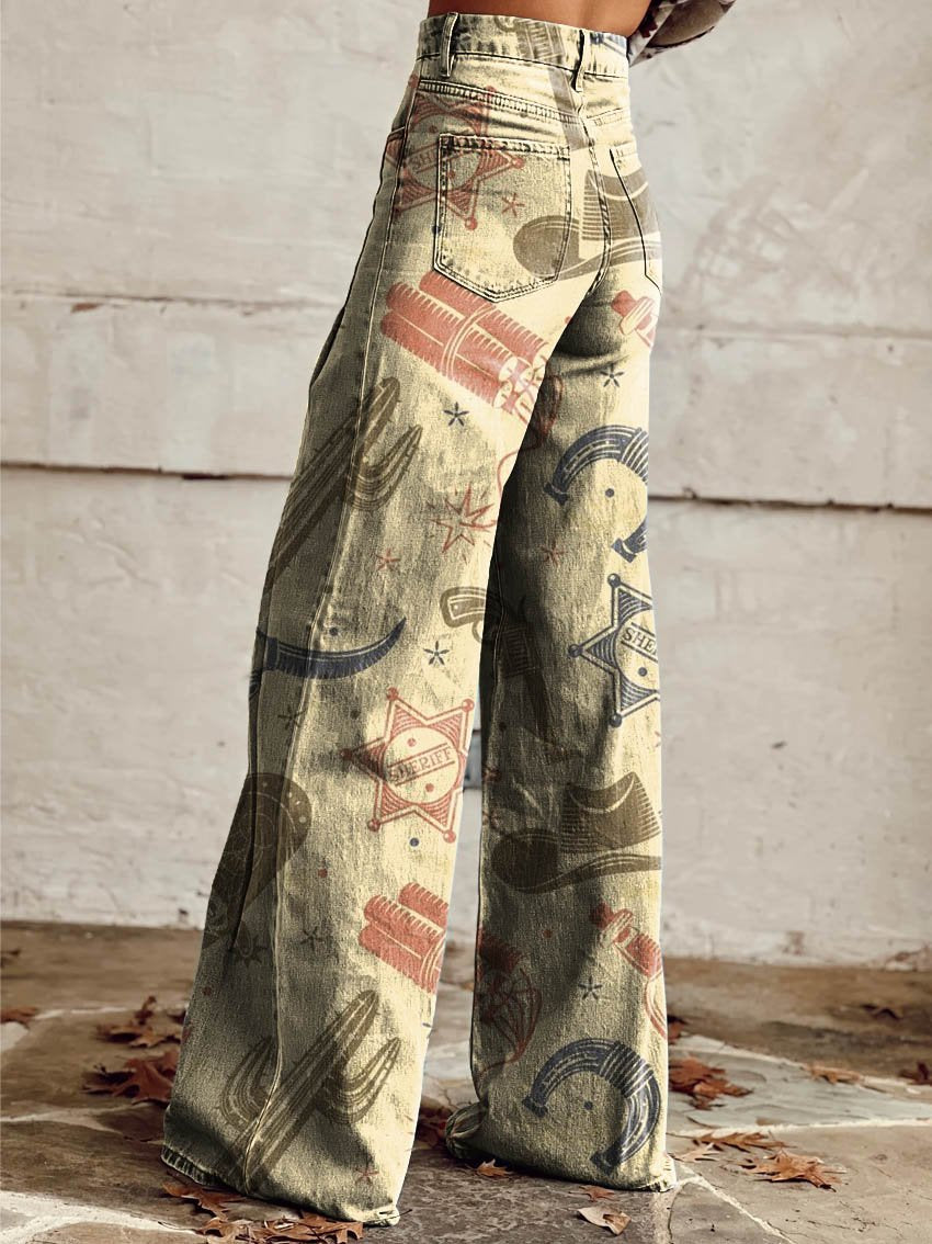 Women's Cowboy Theme Print Casual Wide Leg Pants