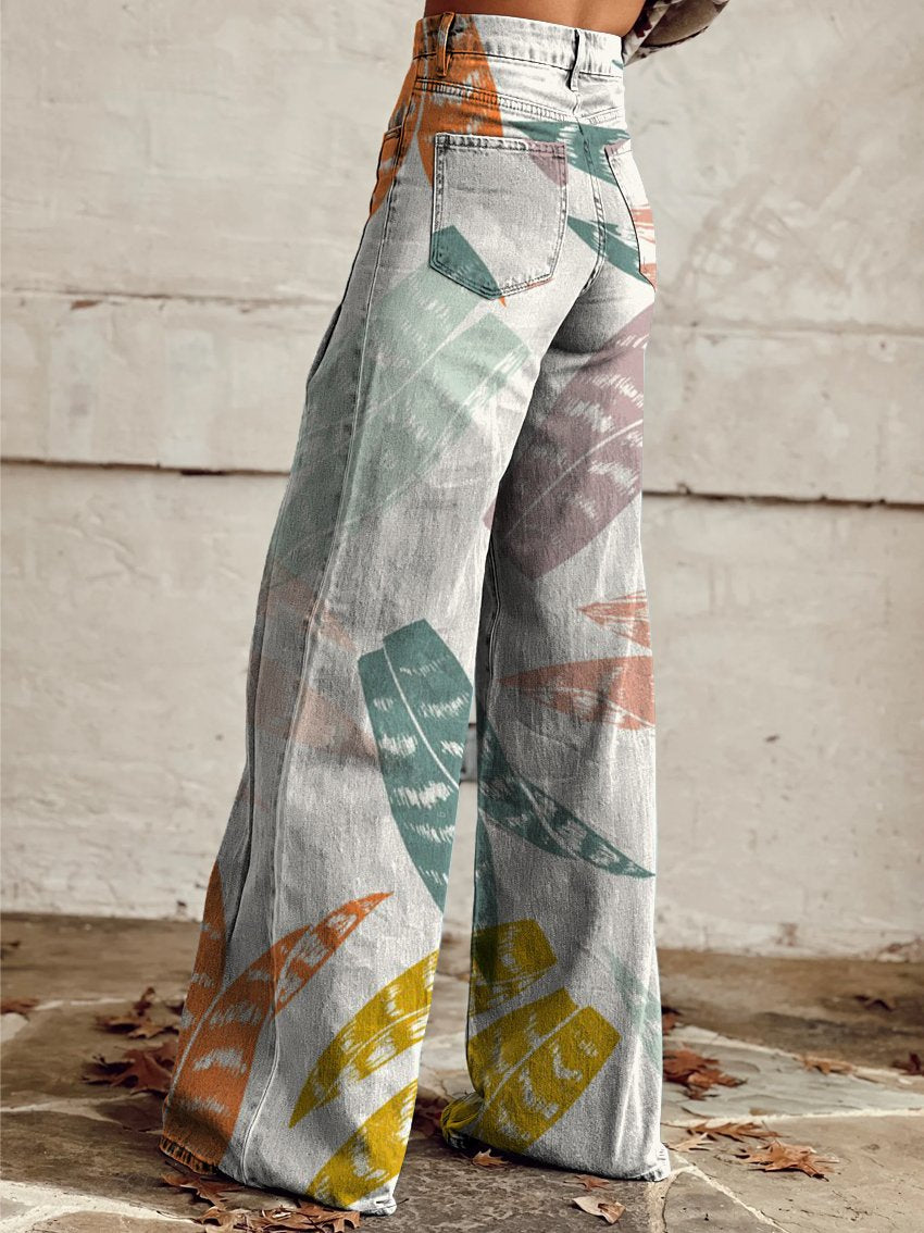 Women's Retro Water Drop Art Print Casual Wide Leg Pants
