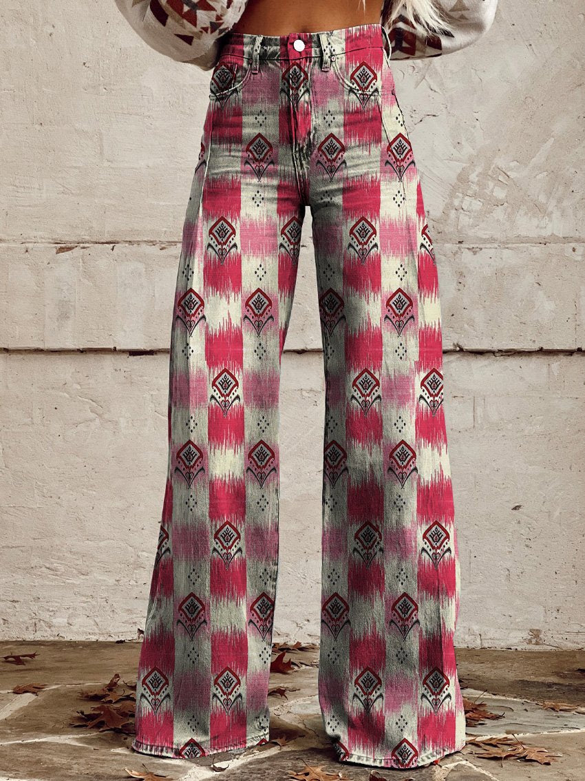 Women's Western Print Casual Wide Leg Pants