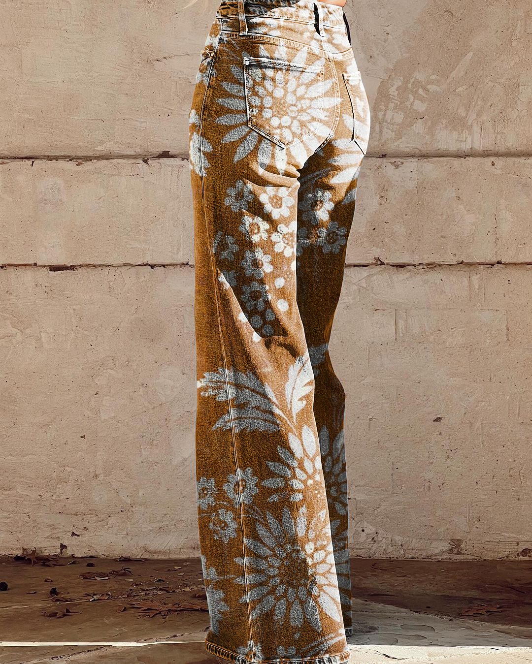Women's Rust Print Casual Wide Leg Pants