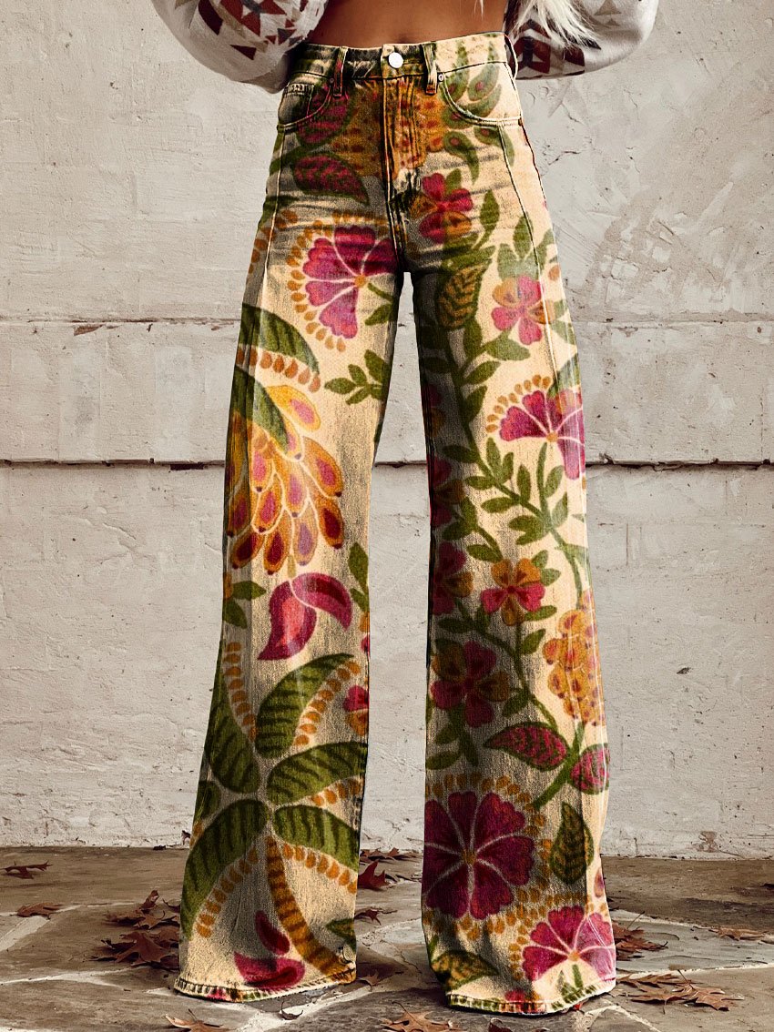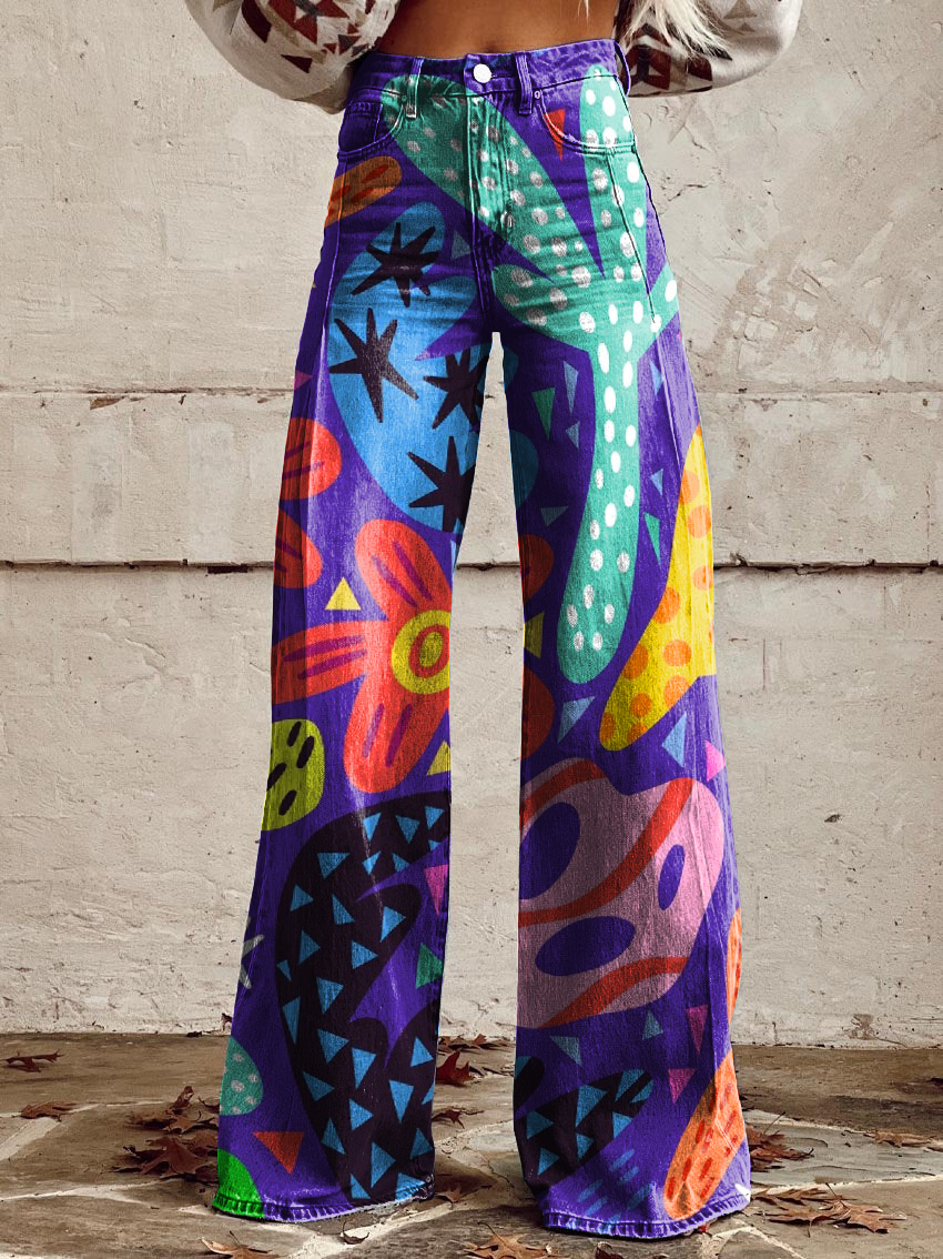 Women's Retro Color Art Casual Wide Leg Pants