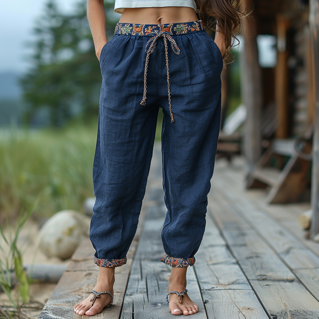 Women's Retro Ethnic Style Loose And Comfortable Linen Pants