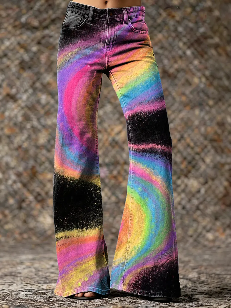 Women's Retro Colorful Artistic Print Casual Slim-fit Flared Pants
