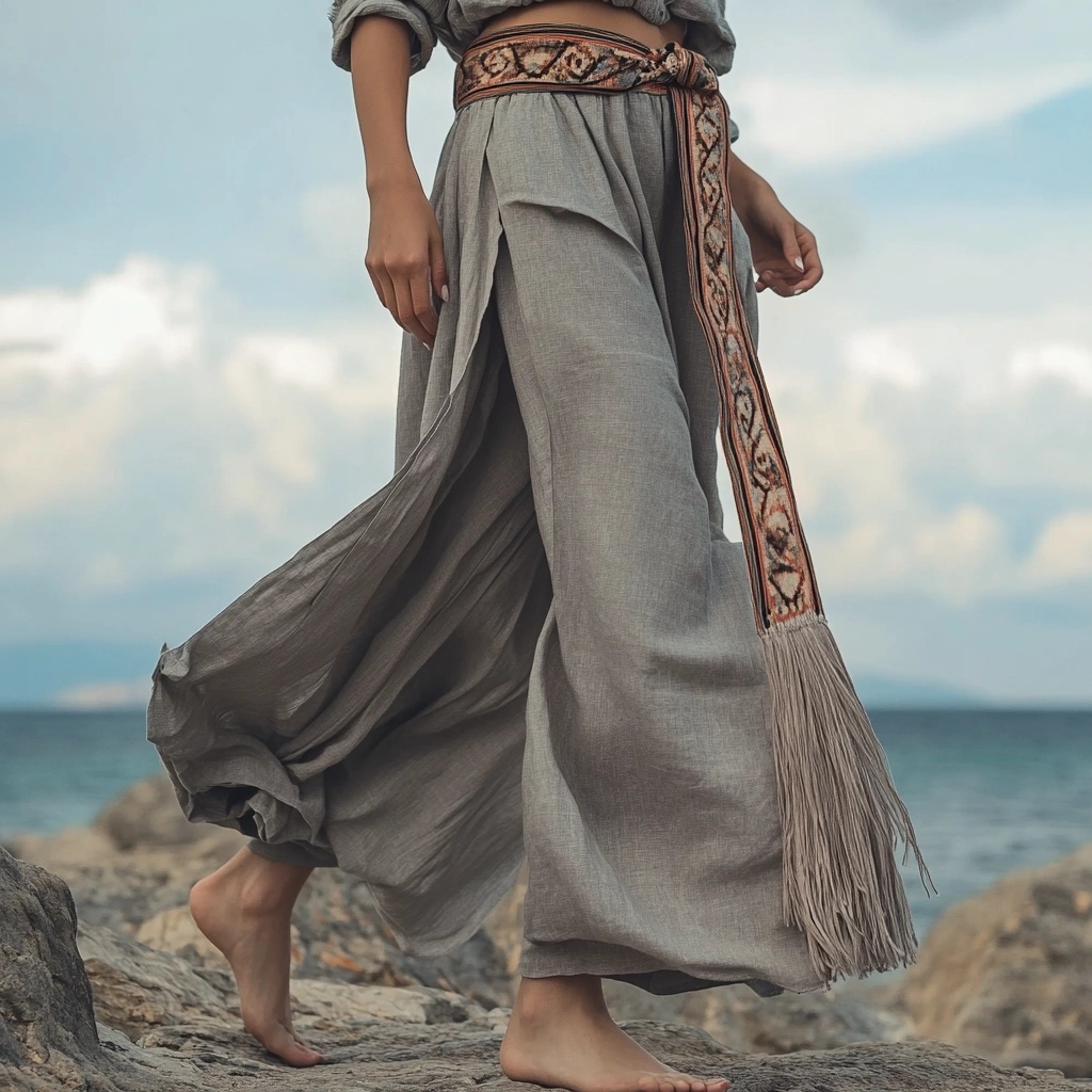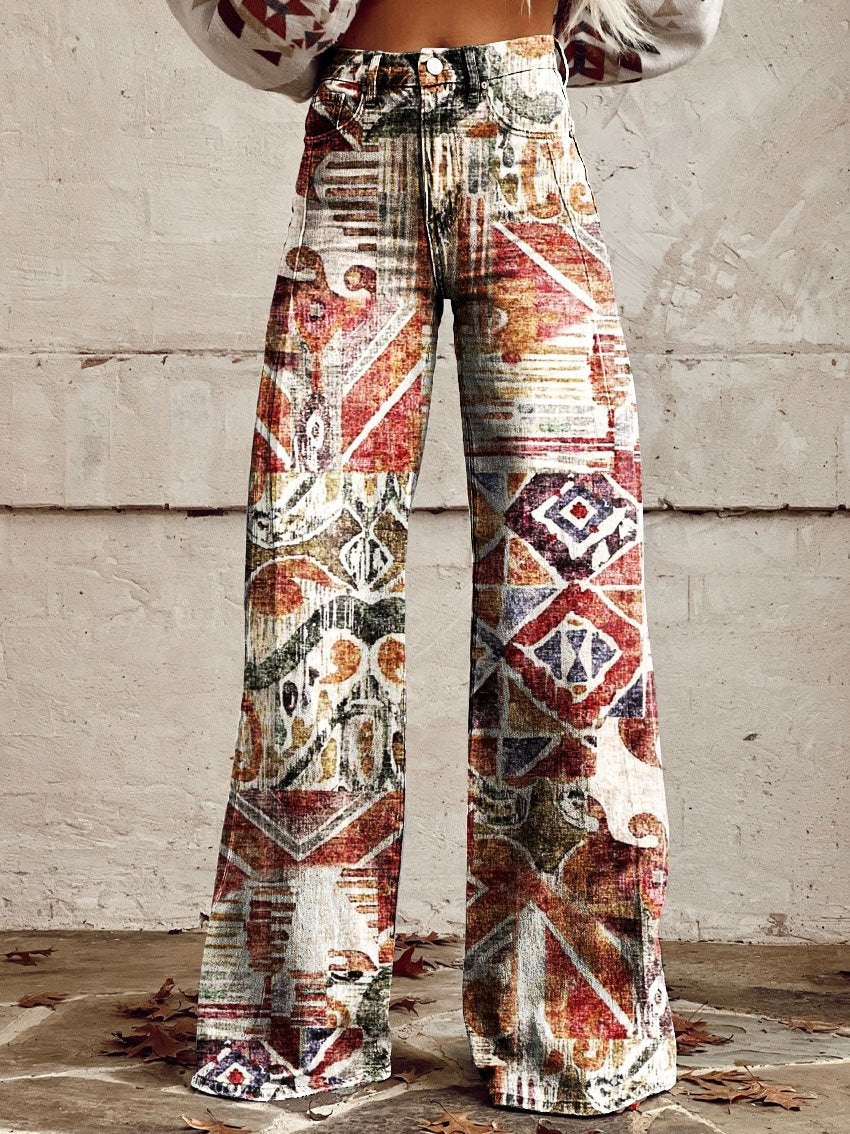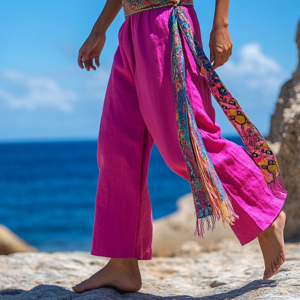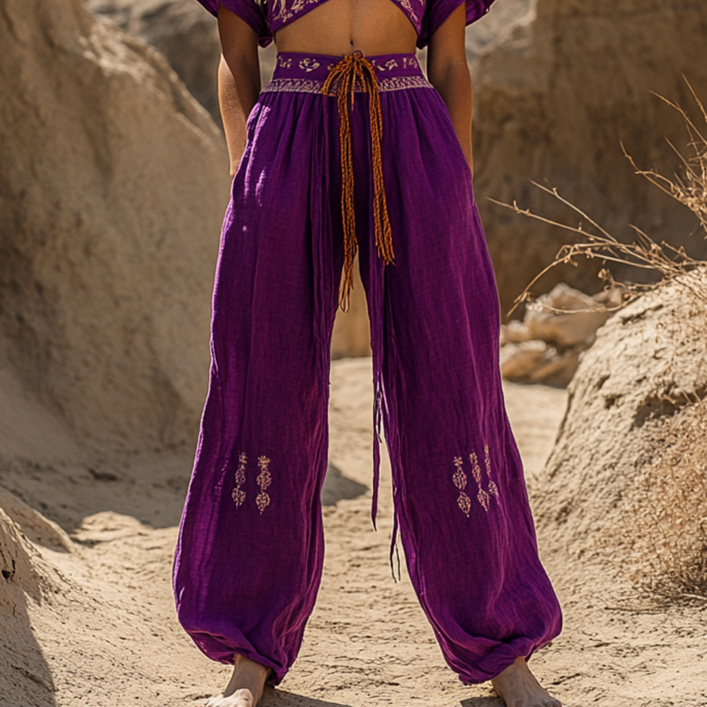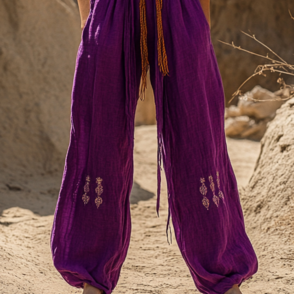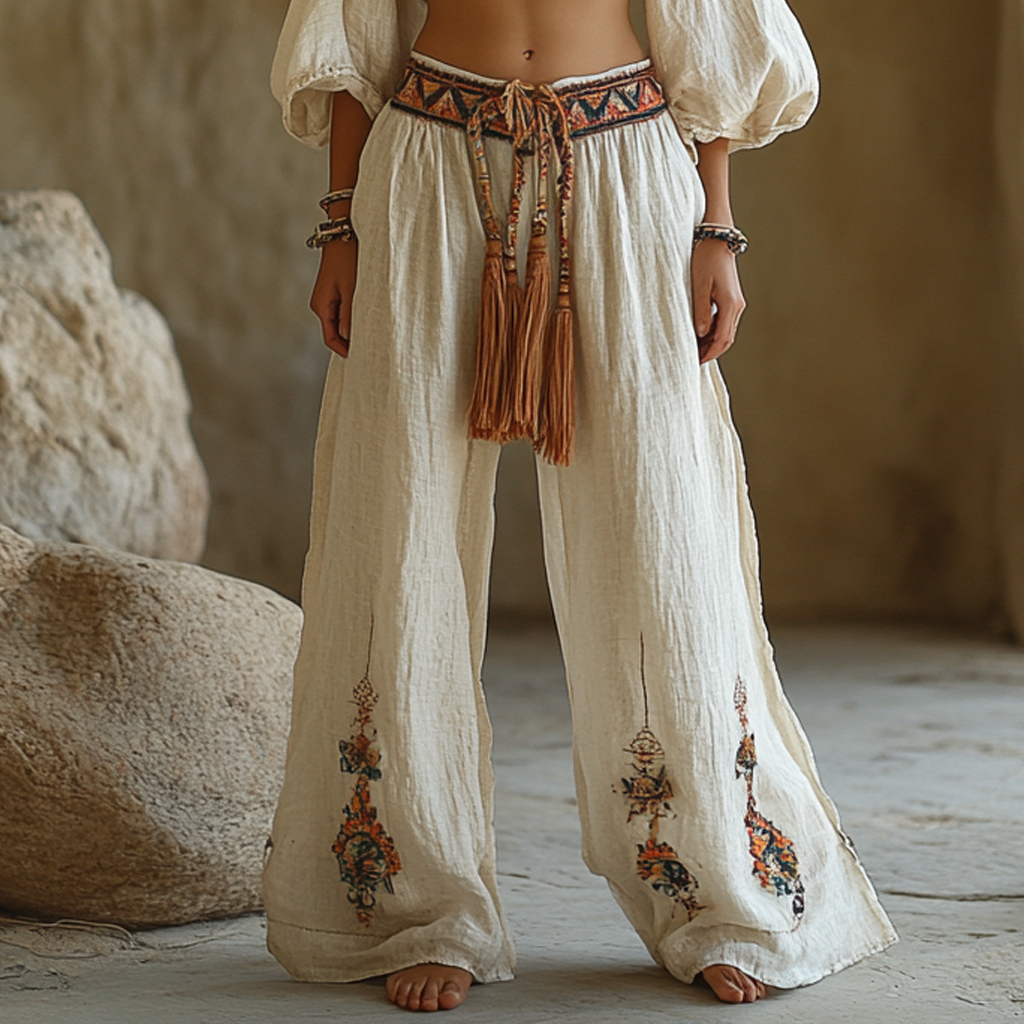 Bohemian Linen Print Ethnic Holiday Casual Pants