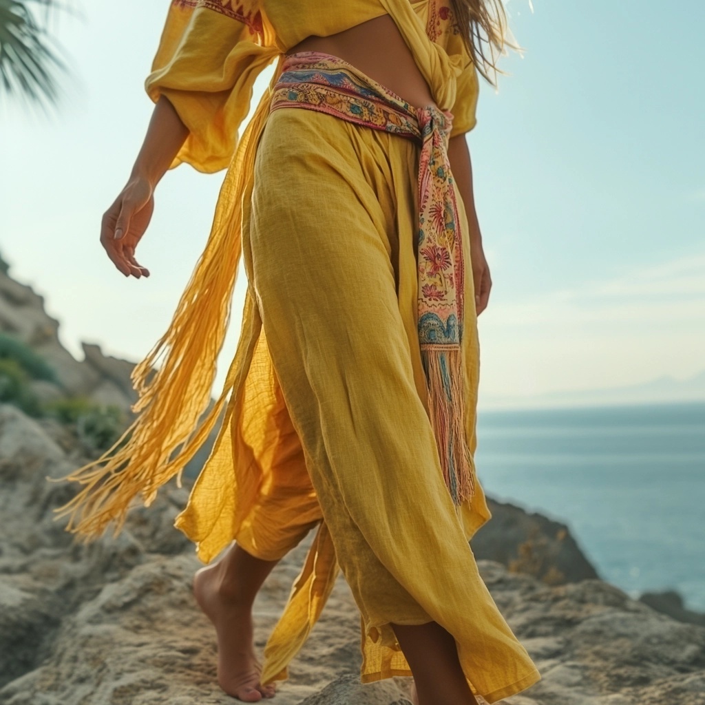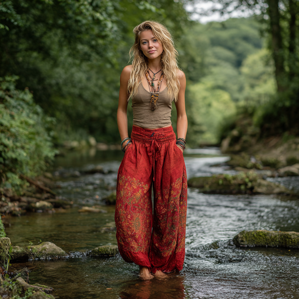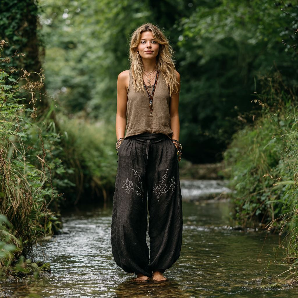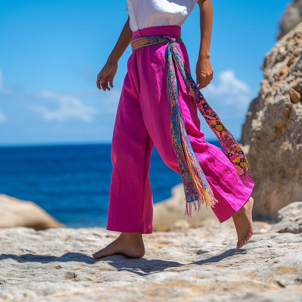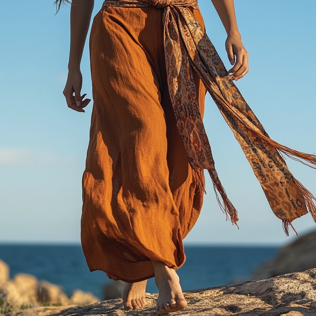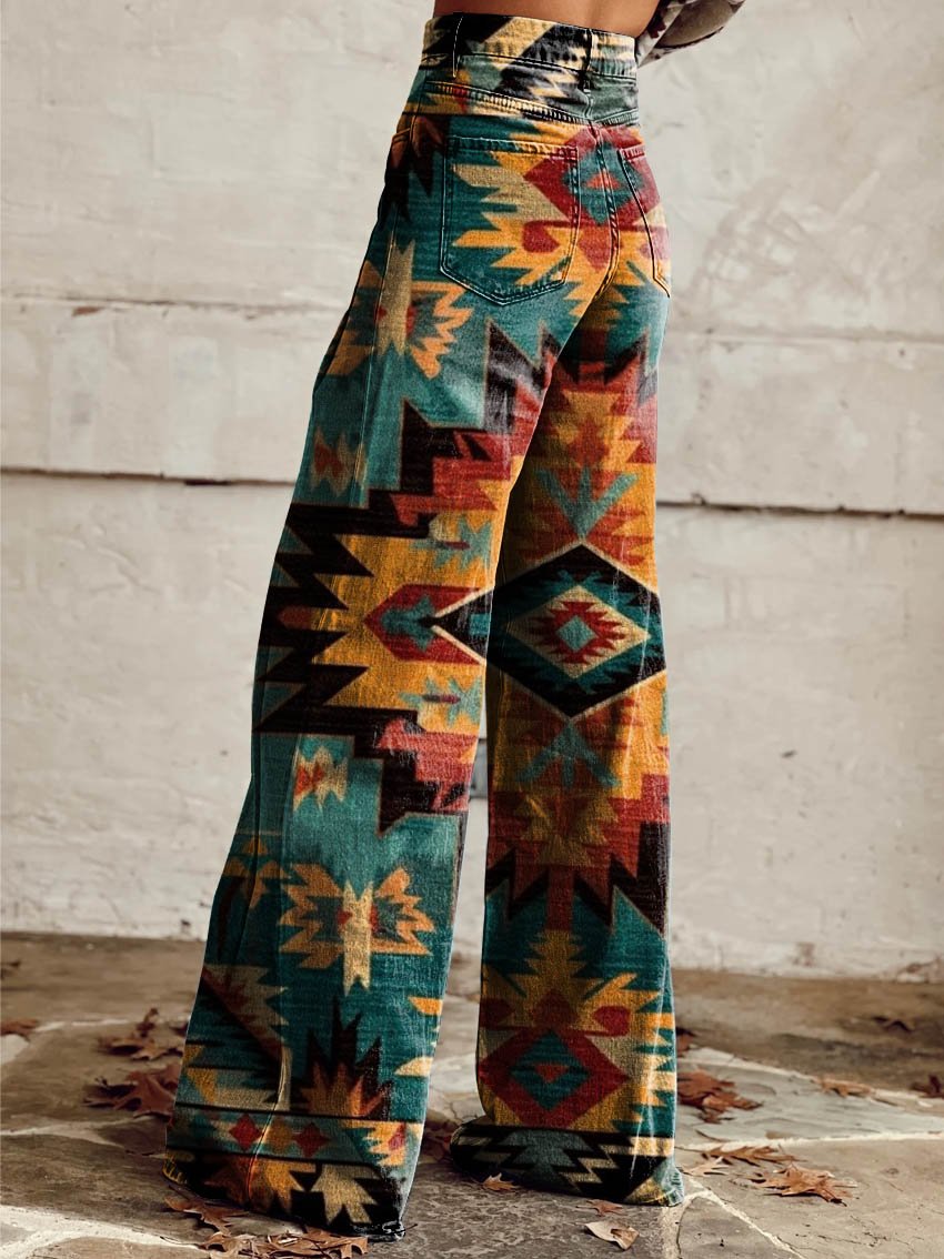 Bohemian Linen Print Ethnic Holiday Casual Pants