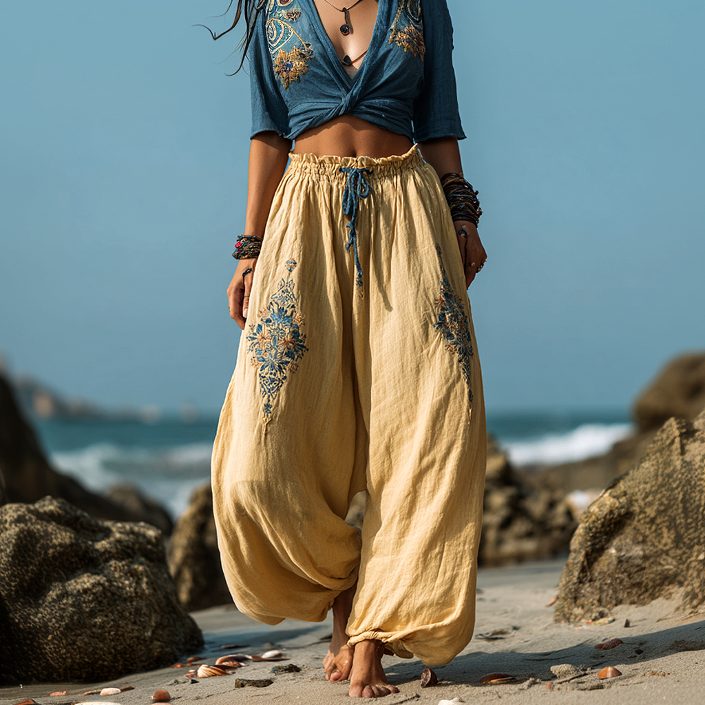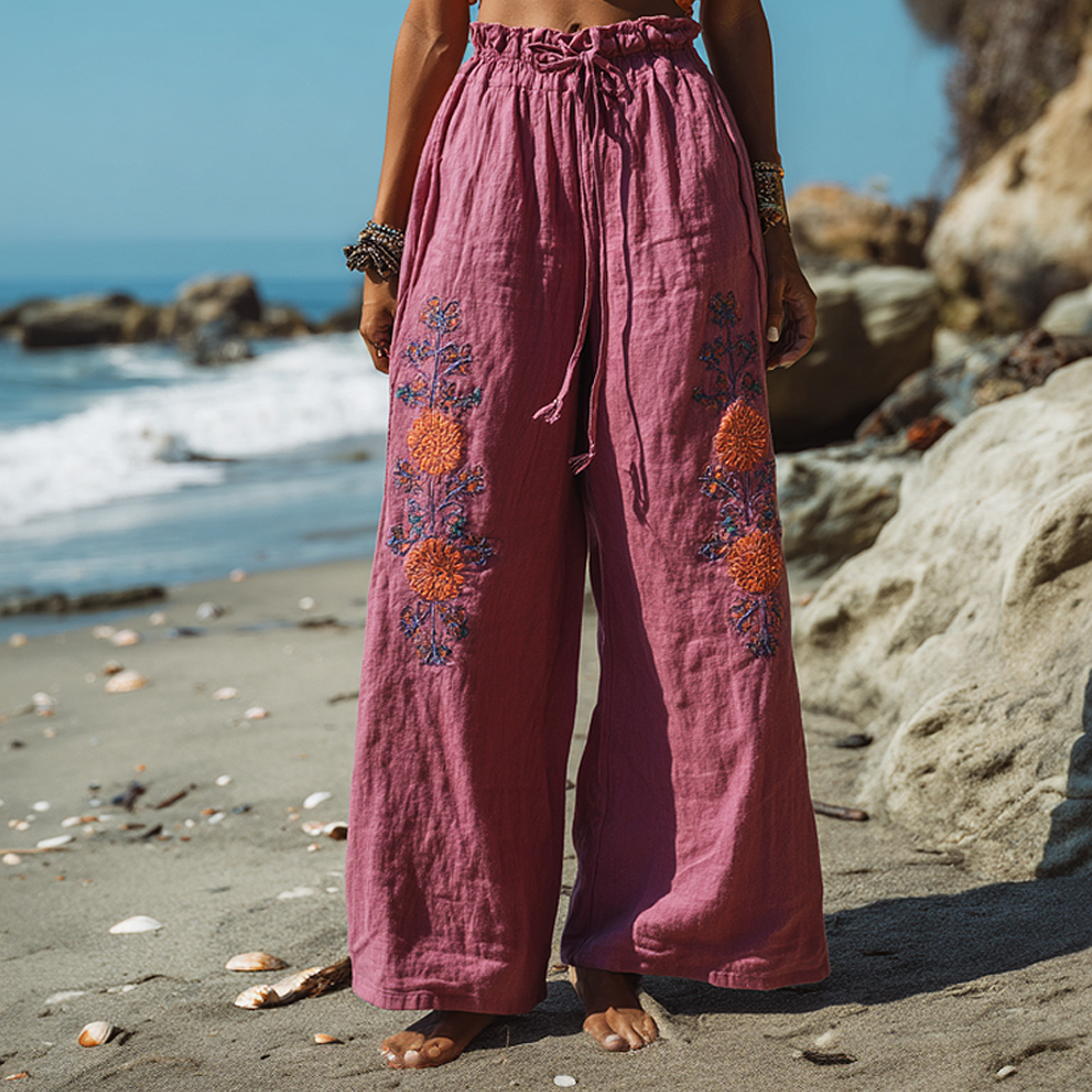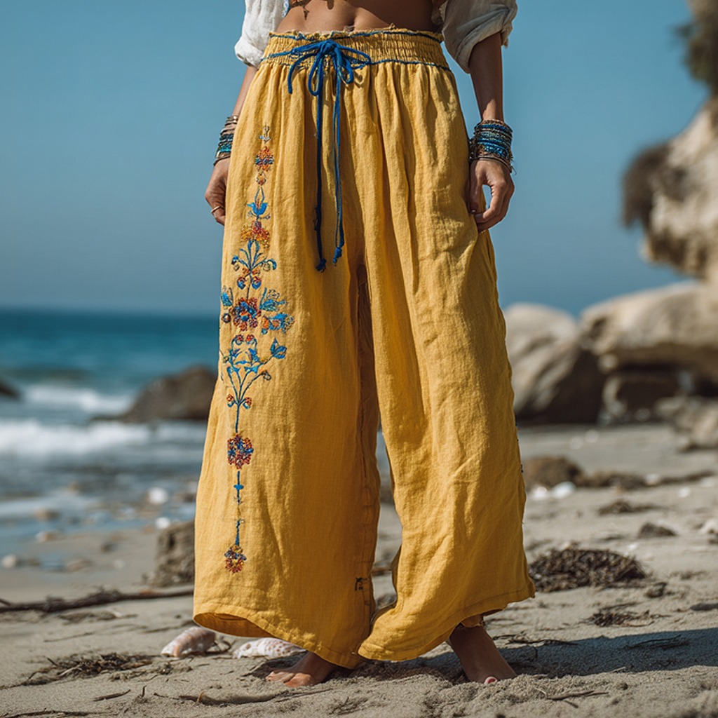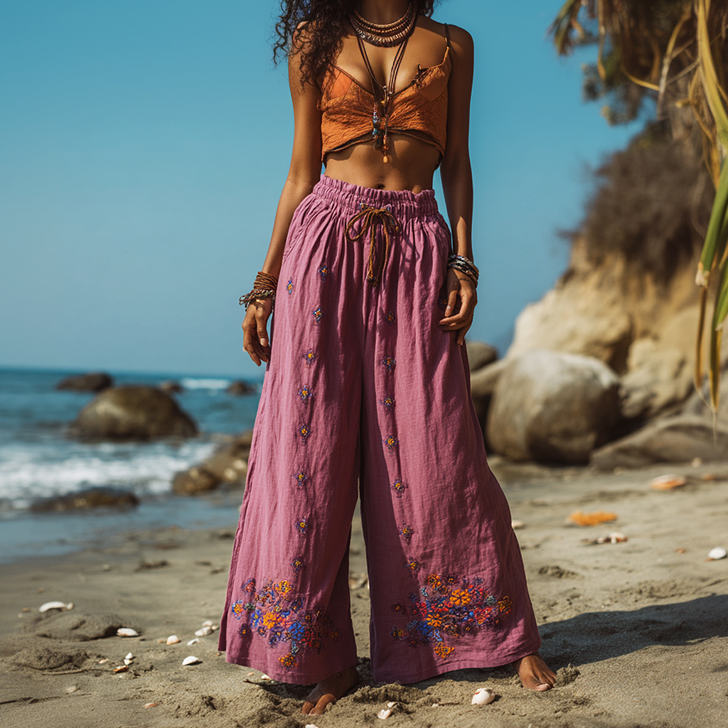 Bohemian Holiday Style Loose Casual Exquisite Embroidered Beach Pants Wide-leg Pants