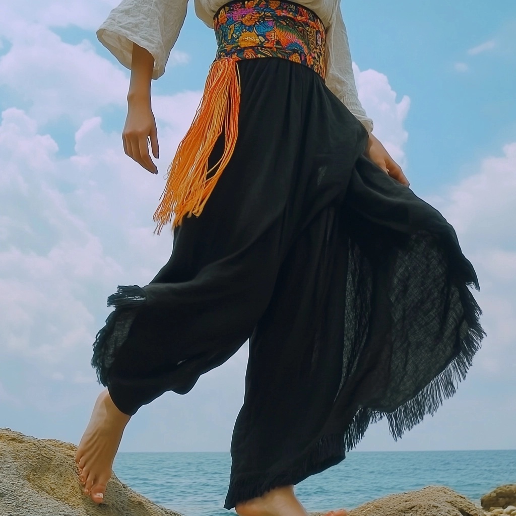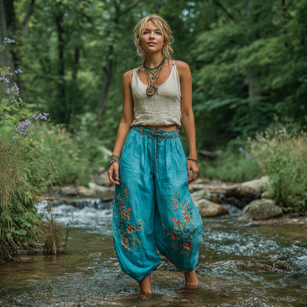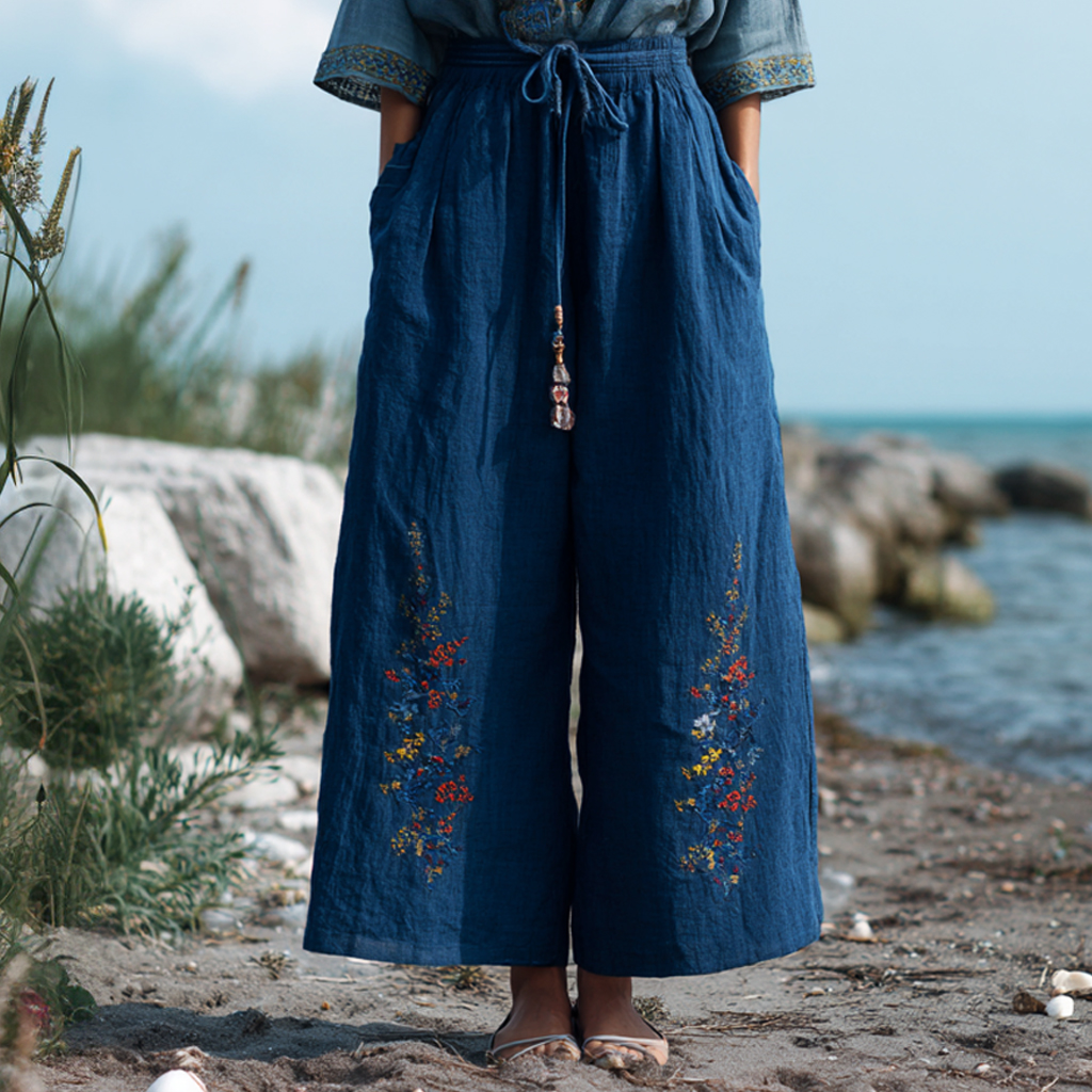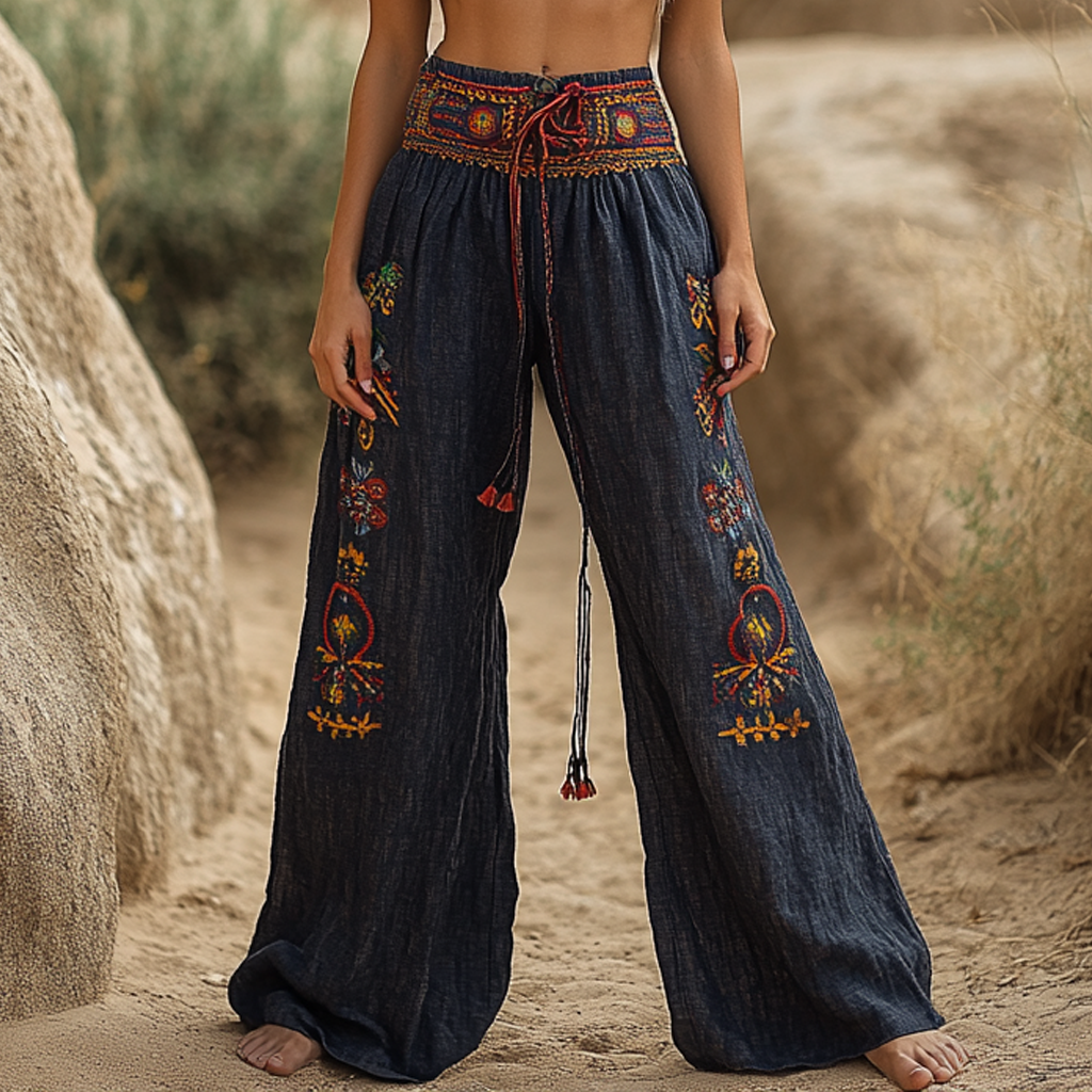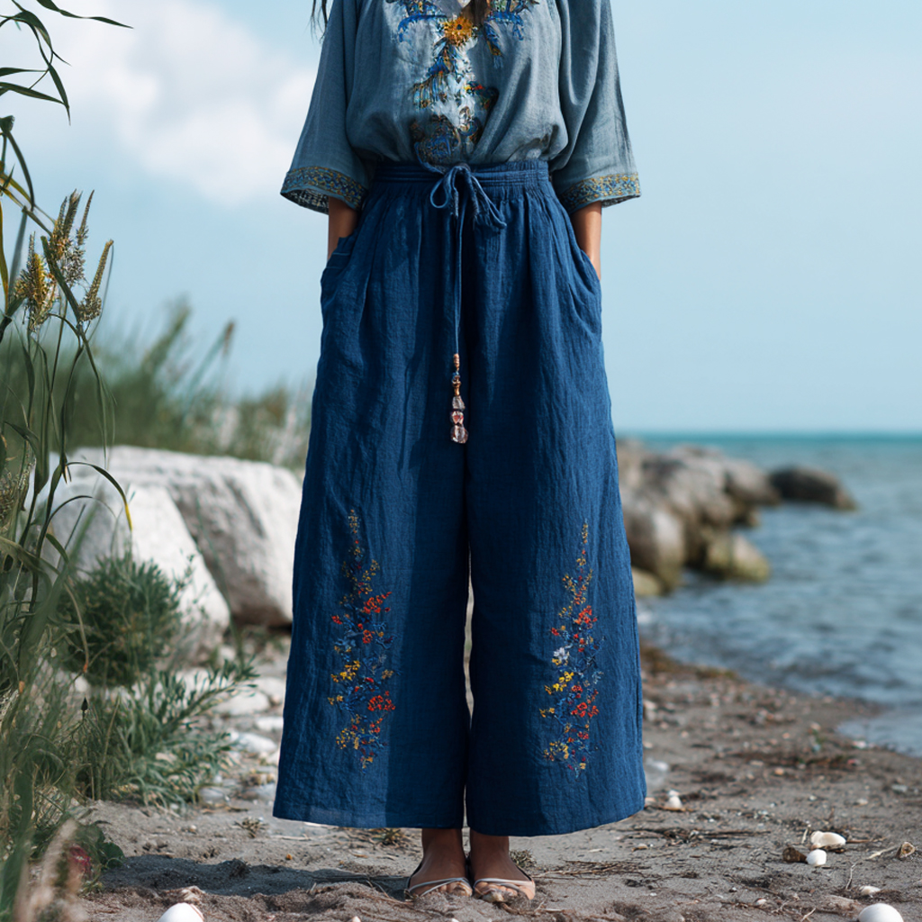Bohemian Holiday Style Loose Casual Exquisite Embroidered Beach Pants Wide-leg Pants