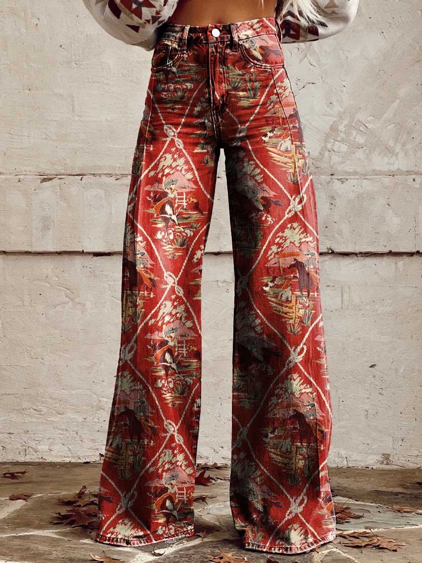 Women's Vintage Print Casual Wide Leg Pants