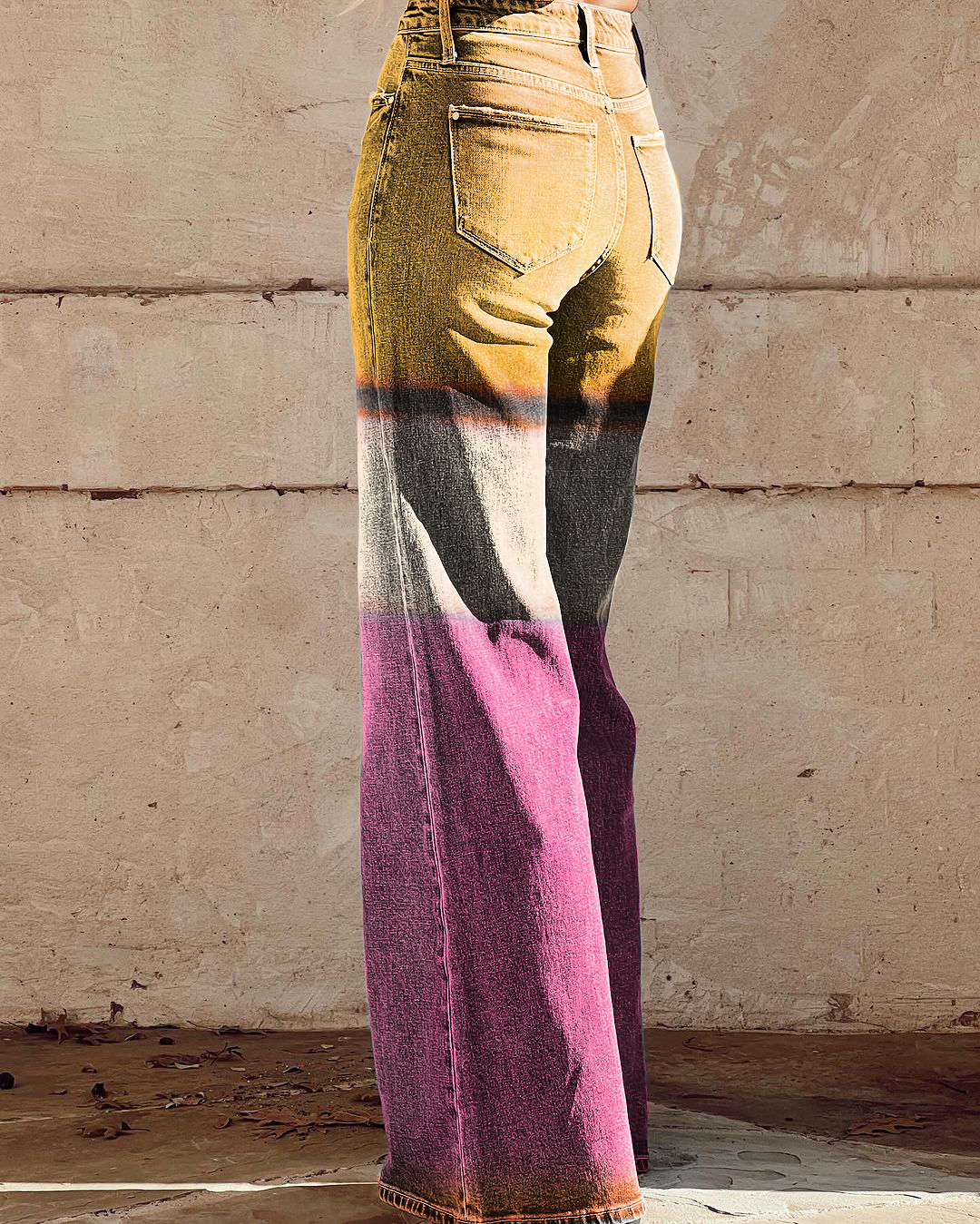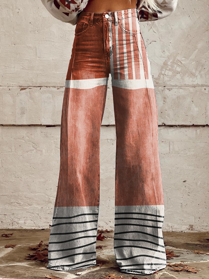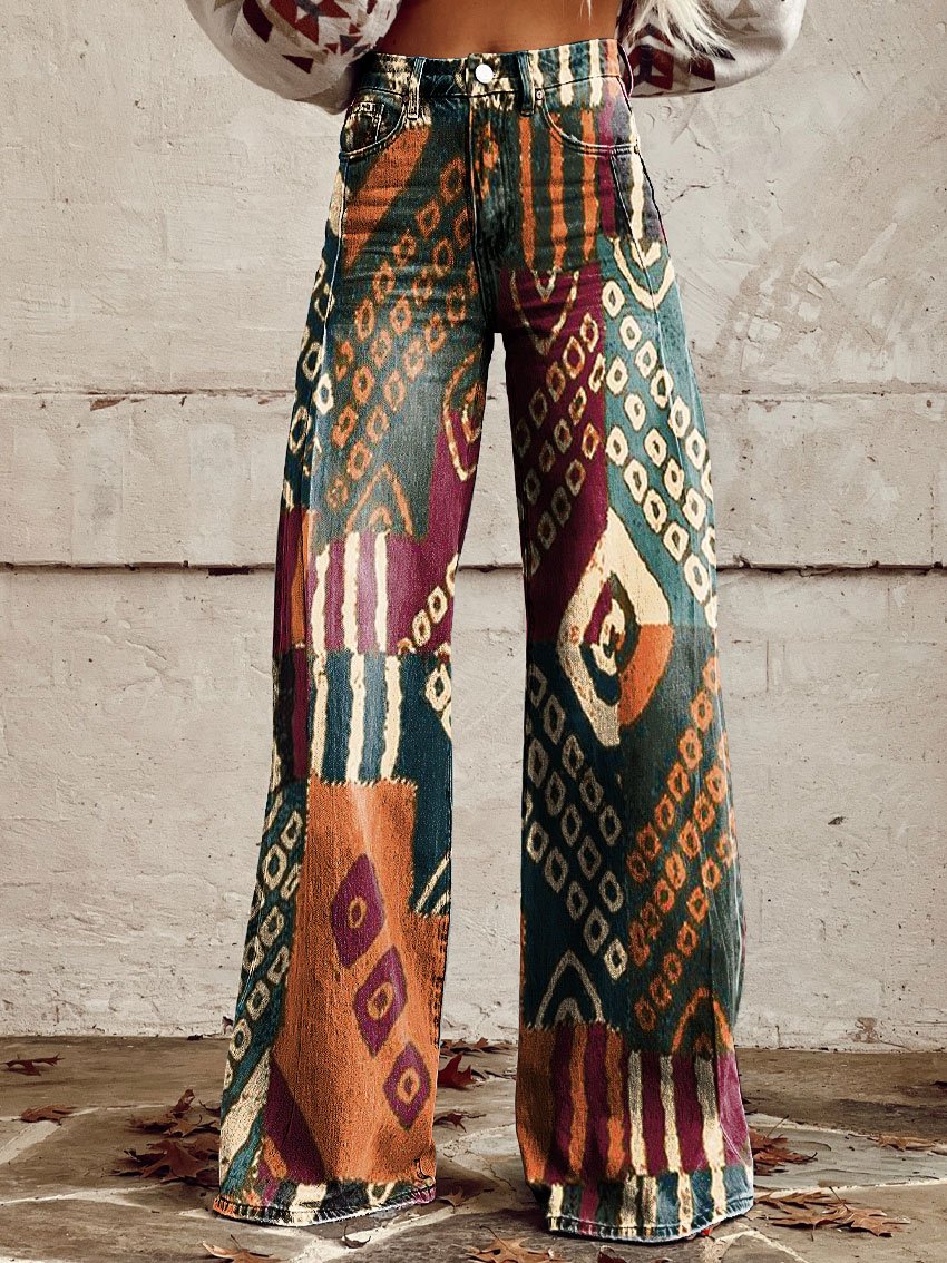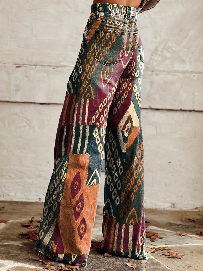 Women's Vintage Lrregular Texture Contrasting Print Casual Wide Leg Pants