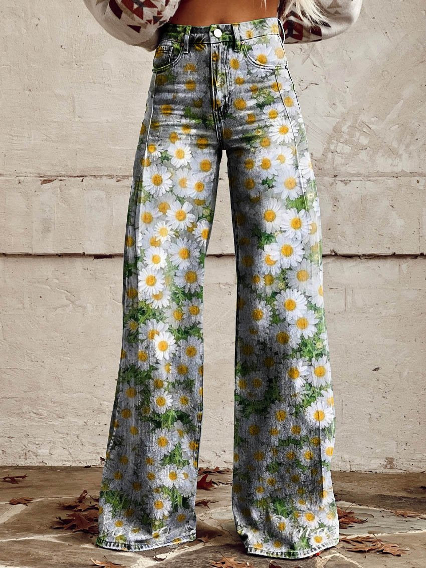 Women's Vintage Floral Daisy Print Casual Wide Leg Pants