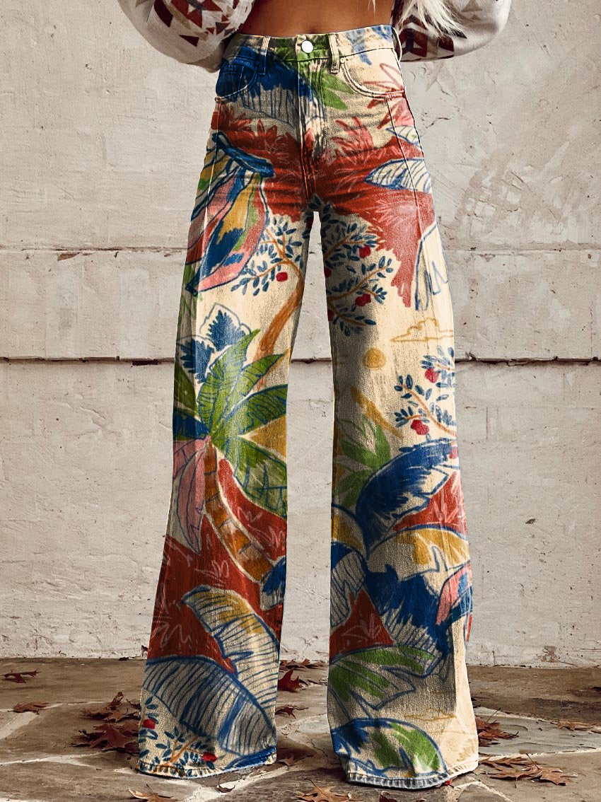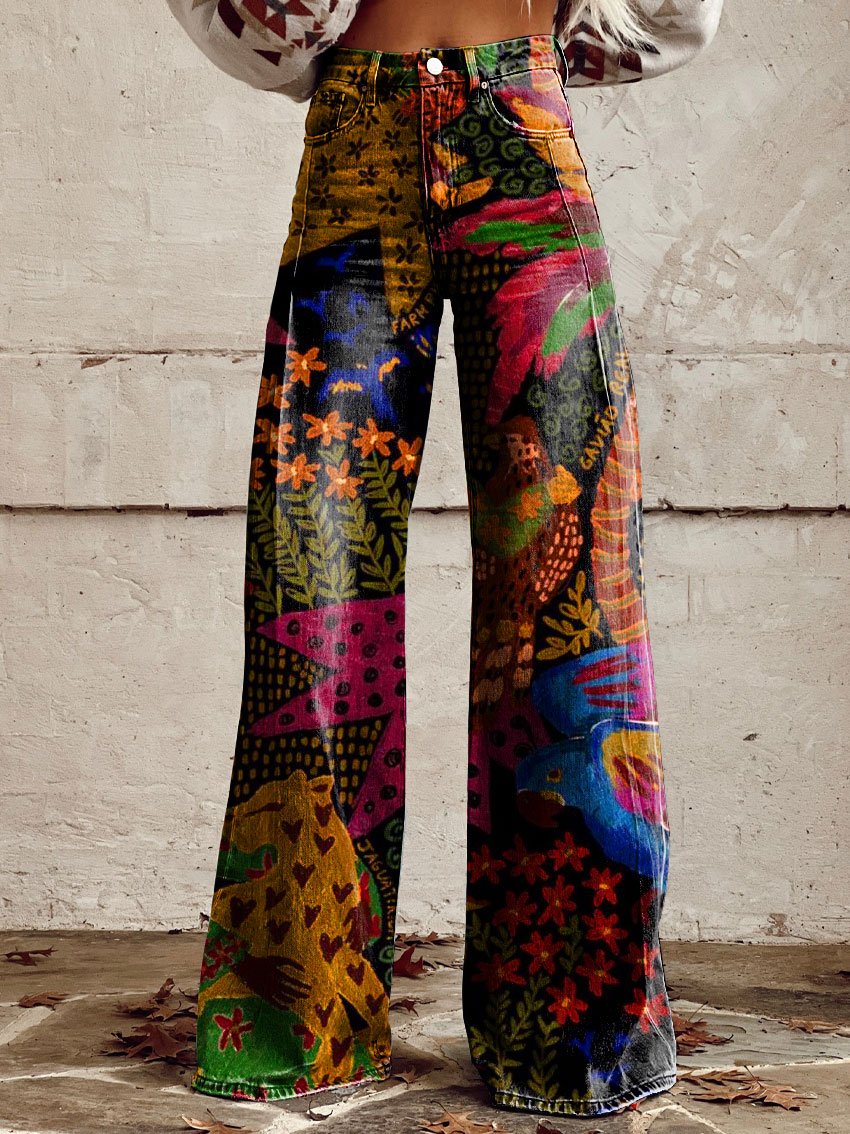 Women's Retro Animal Plant Flower Art Casual Wide Leg Pants