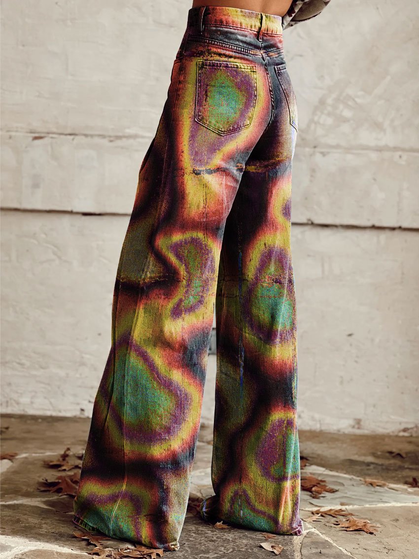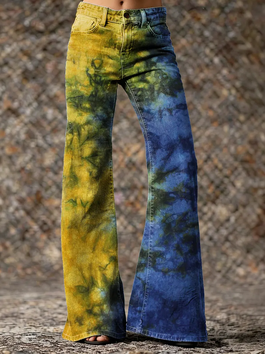 Women's Retro Hippie Tie-dye Art Print Casual Slim-fit Flared Pants