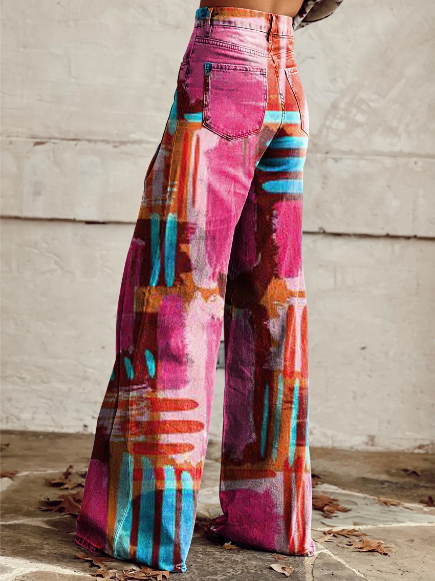 Women's Vintage Abstract Art Print Wide Leg Pants