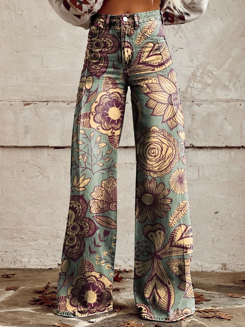 Women's Vintage Sun Floral Print Casual Wide Leg Pants