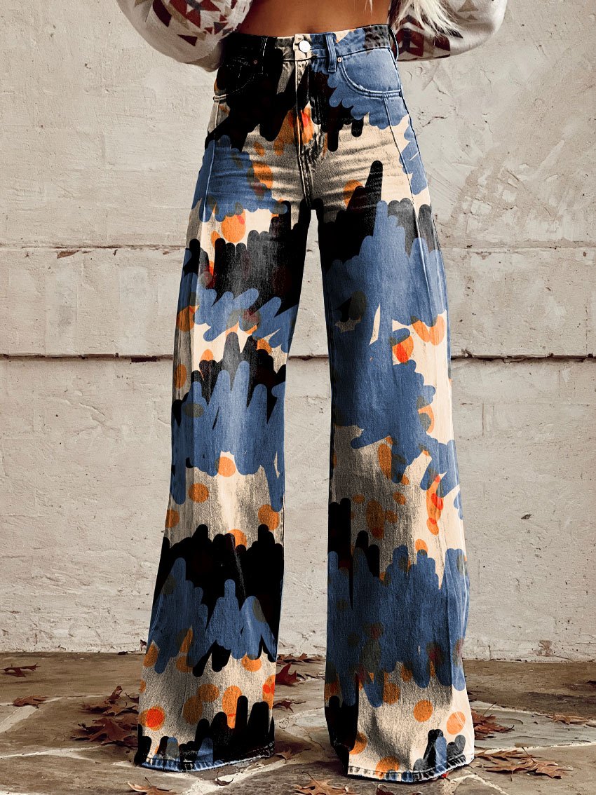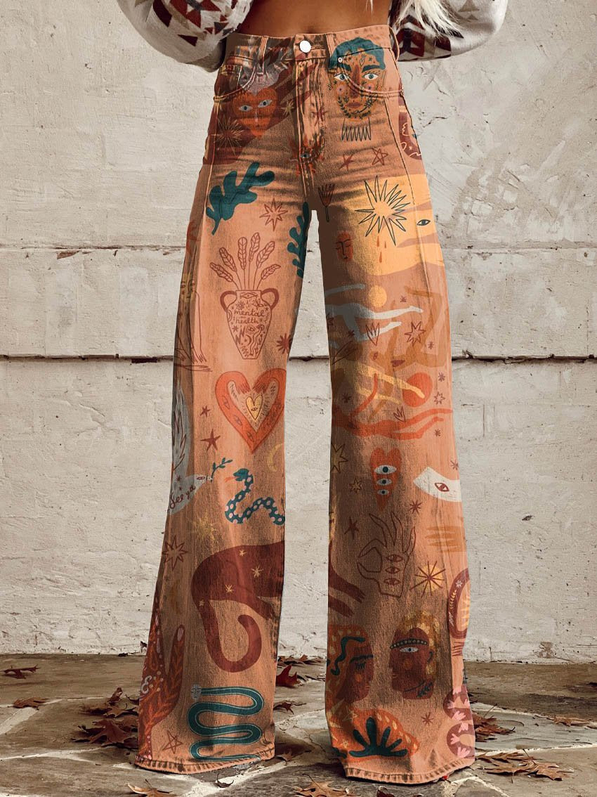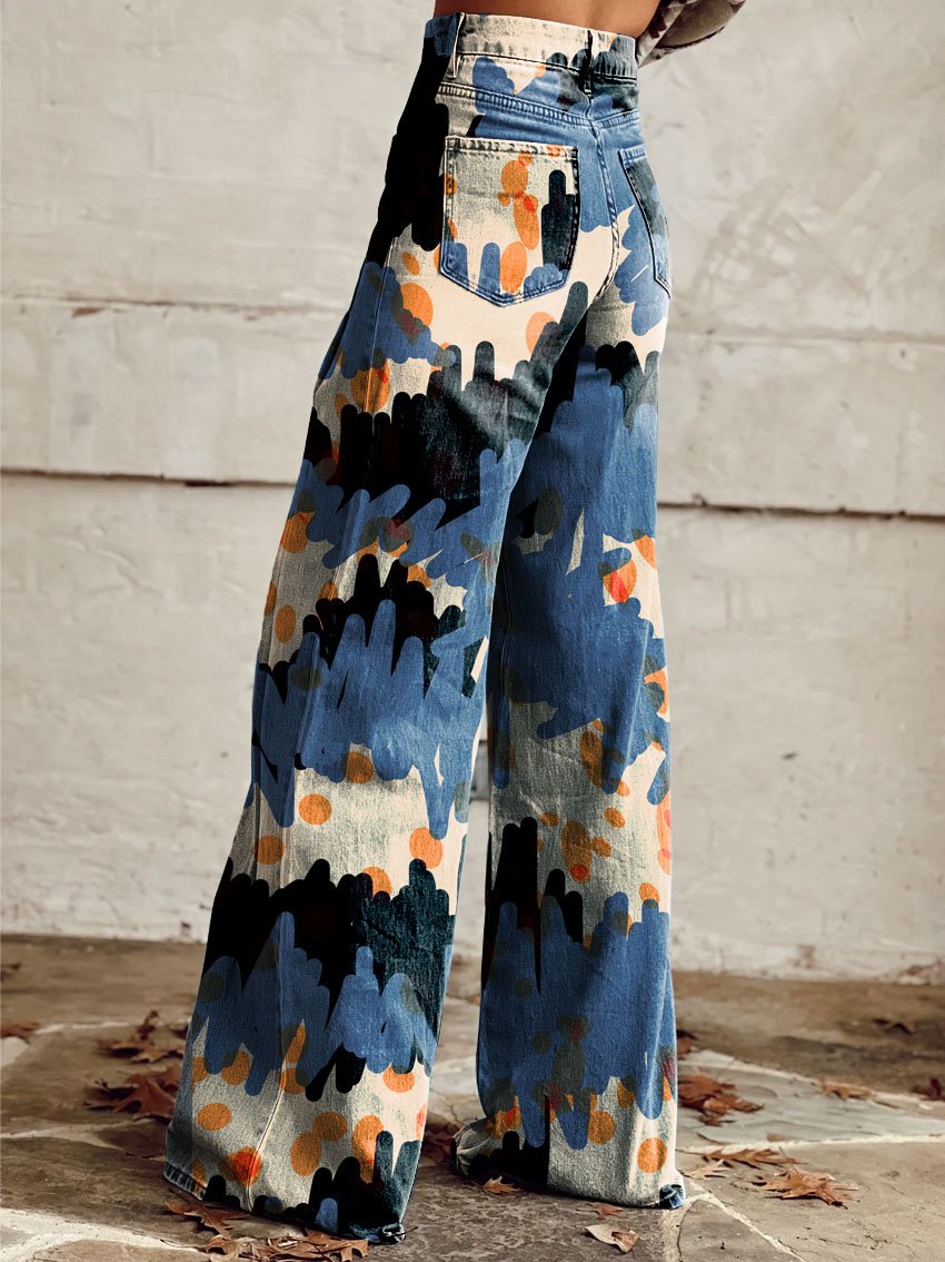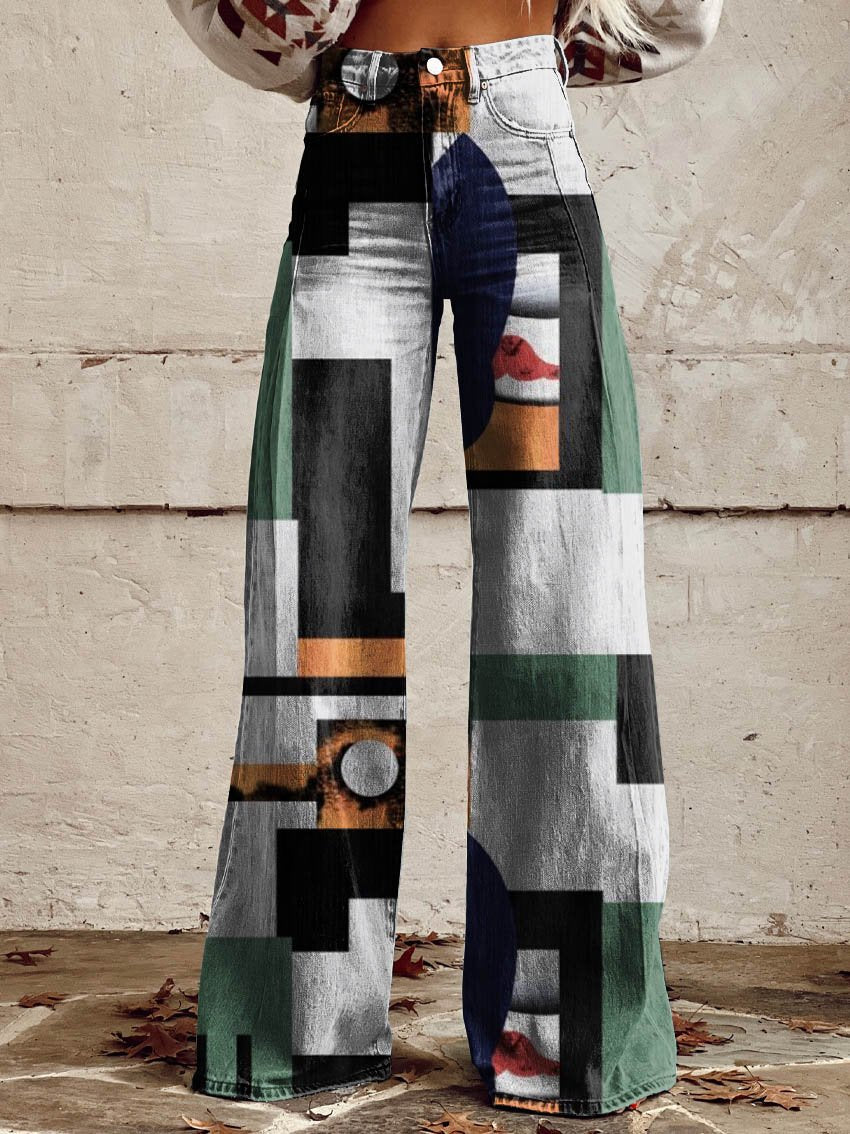 Women's Vintage Abstract Art Print Wide Leg Pants